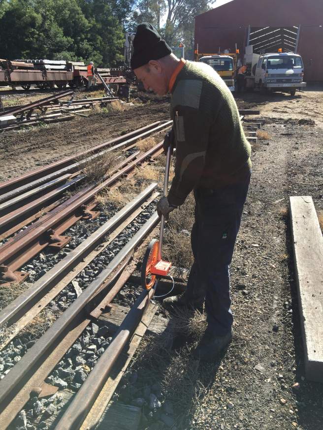 Meanwhile the rails were marked for sleeper spacing, we went with a 700mm spacing nominally, really just as we do expect the heaviest possible axle loads to travel over these rails at some point in the future.