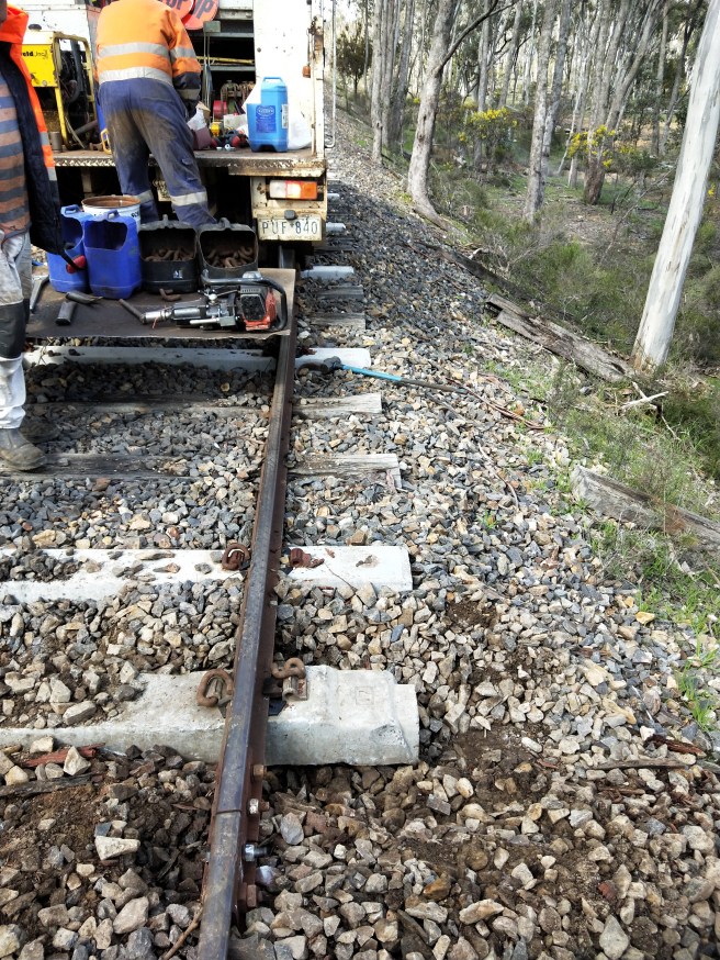 We had a very successful day today, with the last of the ‘clusters’ – groups of failed sleepers, between Muckleford and Midland Hwy now removed!