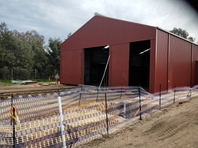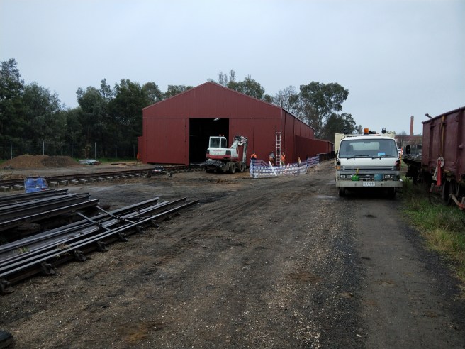 Tomorrow will see the ballast for the loco shed track delivered and distributed, with Thursday’s gang (meeting from 8.15am at Castlemaine) undertaking the final tamping, lifting and tidying up.