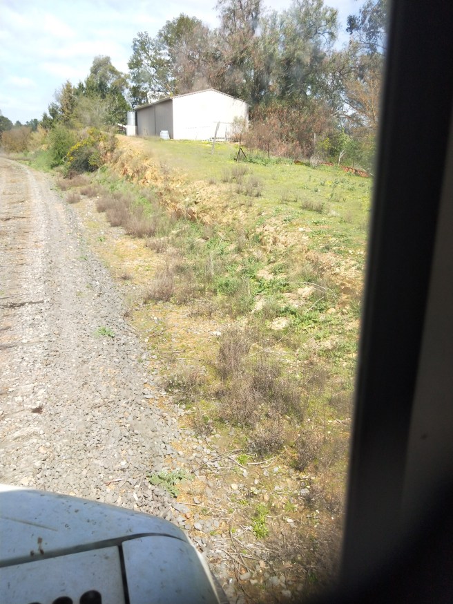 A very bad picture from today, but it does sort of show what we have achieved. All the remain track fastenings from Donkey Gully Rd to Guildford have now been collected and stockpiled at convenient locations.