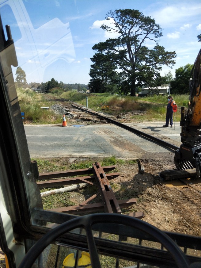 Approx 45 rails were towed over Fryers Rd today, with 12 of those still in the track before lunch. We’ve got the operation down pat now.