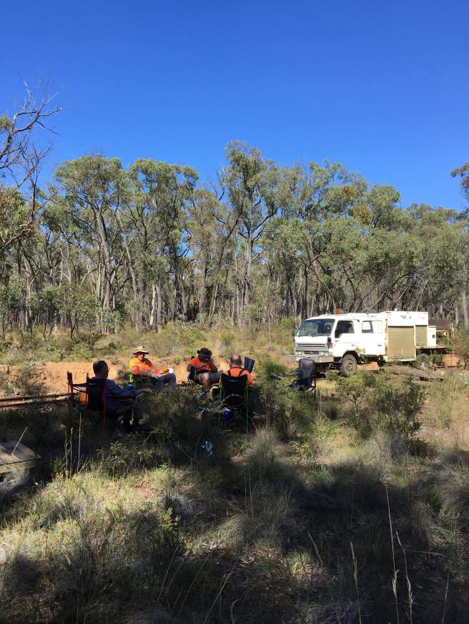 Morning tea in some of the little available shade, unfortunately from now through till March we do need to plan works around having some shade.
