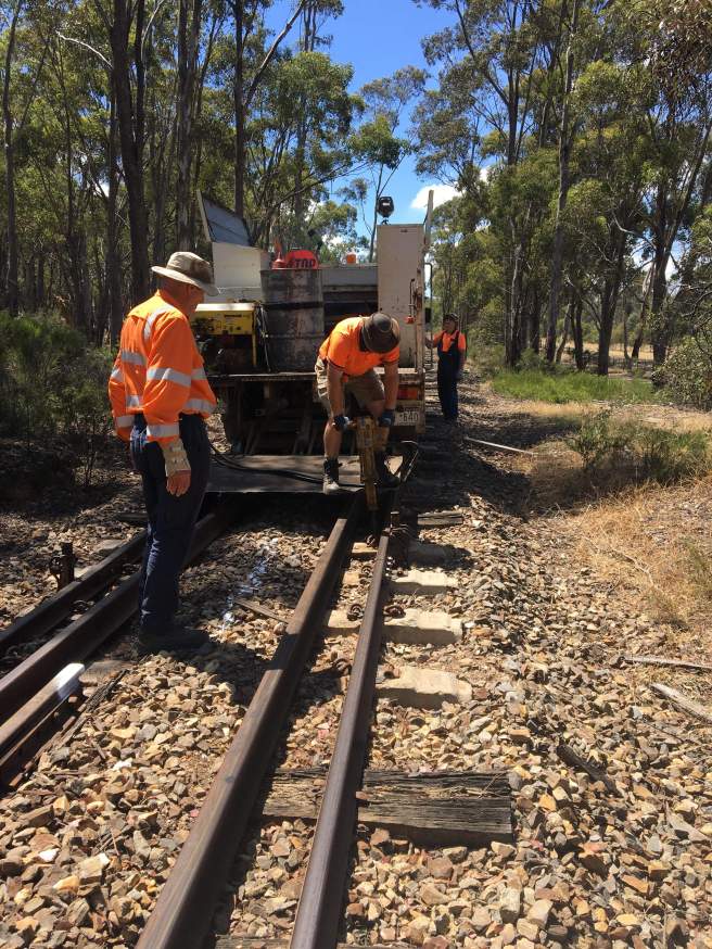 A significant dip just out of Muckleford that was detected in Yesterday’s inspection was jacked and packed with a kango hammer, not a fun job but thankfully not too large a task given it was localised to just the joint.
