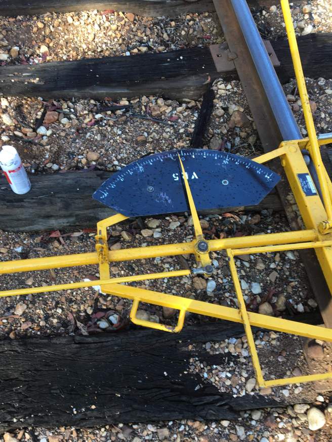 The rolling track gauger was put to very good use, with readings such as shown here (1mm) now very much more the norm, a very pleasing thing given all the re-sleepering we’ve done this year!