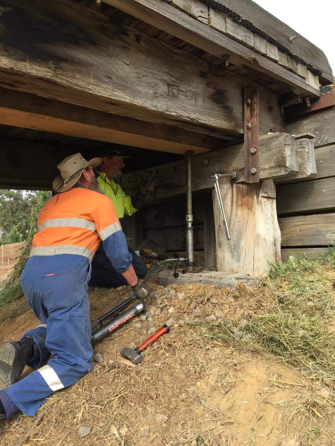 Amongst the works was a bit of jacking and packing the track at the abutment, which we’d managed to move slightly while jacking the bridge.