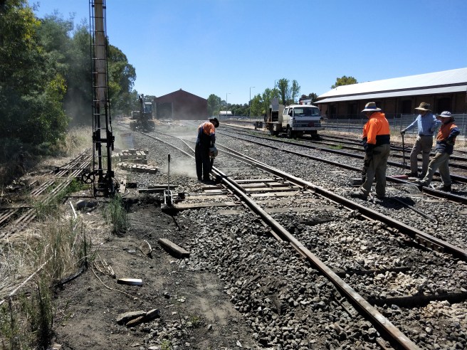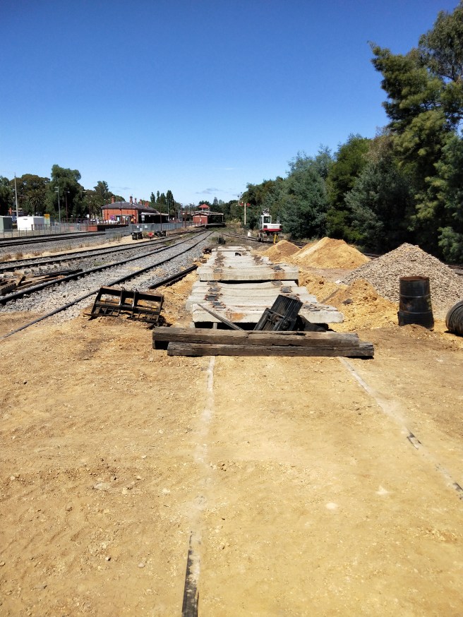 We’ll be back here on Tuesday next week, hopefully to get the concrete sleepers laid out, rails bolted together on top and a get a start made on clipping up. Meeting Maldon 8am or Castlemaine from 8.30am.