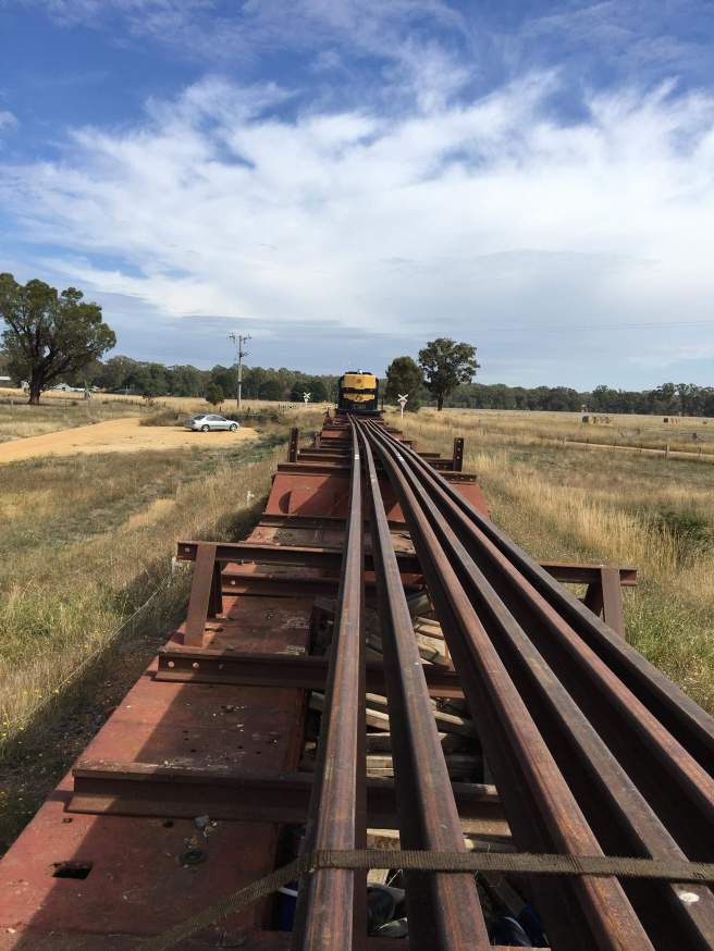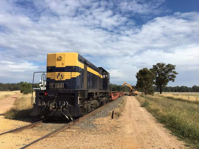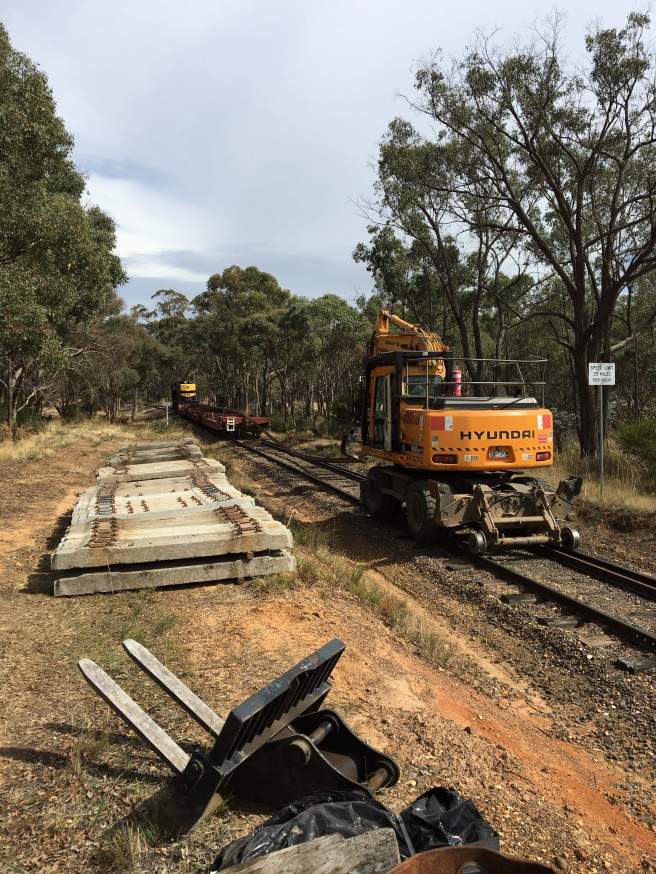 Today saw most of the material for the upcoming crossing re-build delivered to site. First off a train load of concrete sleepers were taken out from Maldon, having been collected from Muckleford the day before.