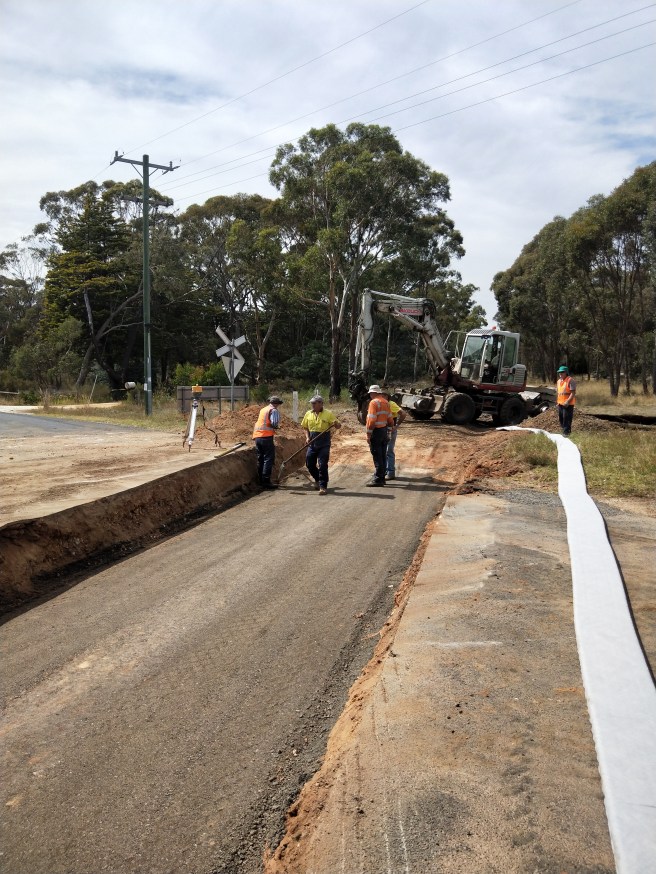 The worst of the job is behind us now, with the roadway ready for ballasting, lifting and final compacting. We’ve got a lot to do before the ashpalters arrive at 1pm, but it should be achievable.