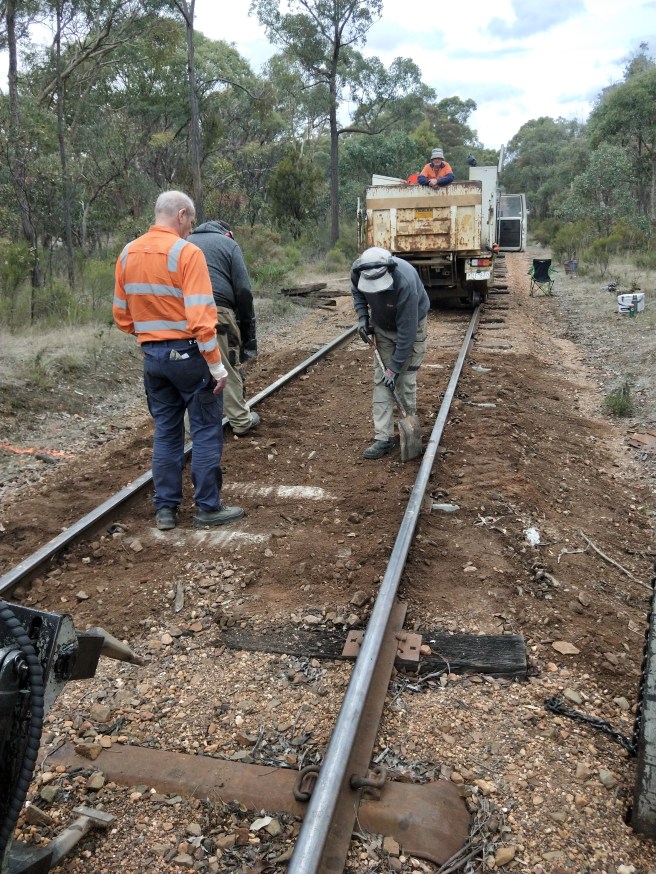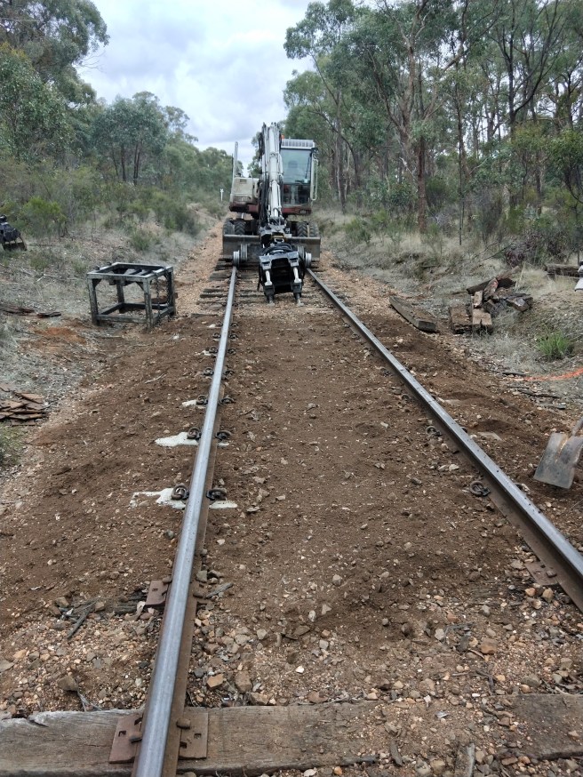 We found ourselves with a bit of spare time at the end of the day, so set about installing concrete sleepers under the outer insulated joint location for the upcoming Bendigo Road Flashing Lights.