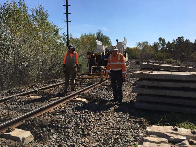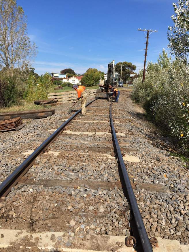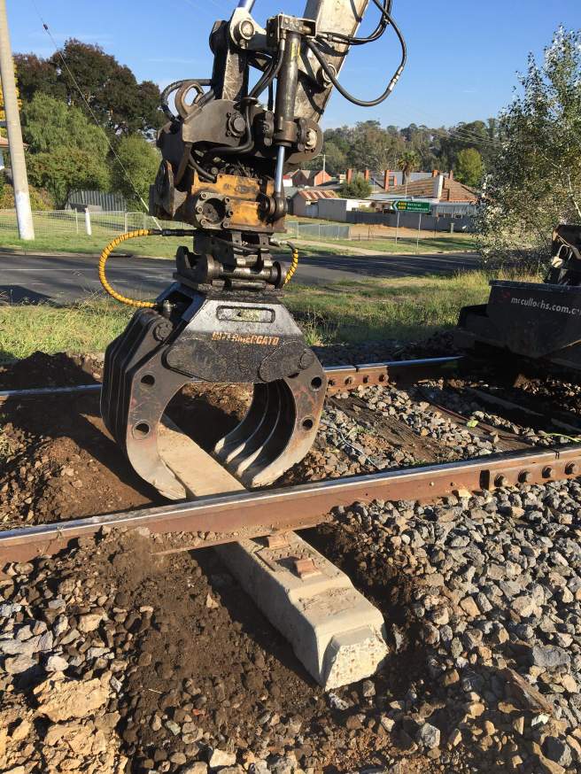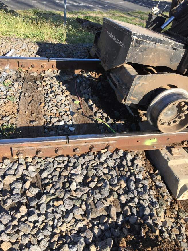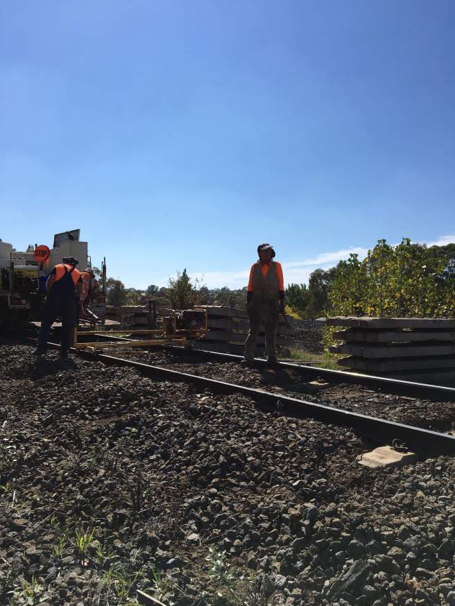 Except for the sleepers under the insulated joints, which we’ll do when the lights are disabled in case we damage the wires, we’ve achieved 1 in 2 concrete sleepers over the length we’ve been working on.