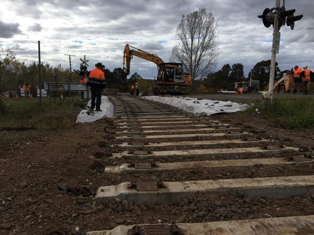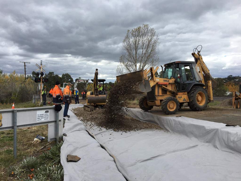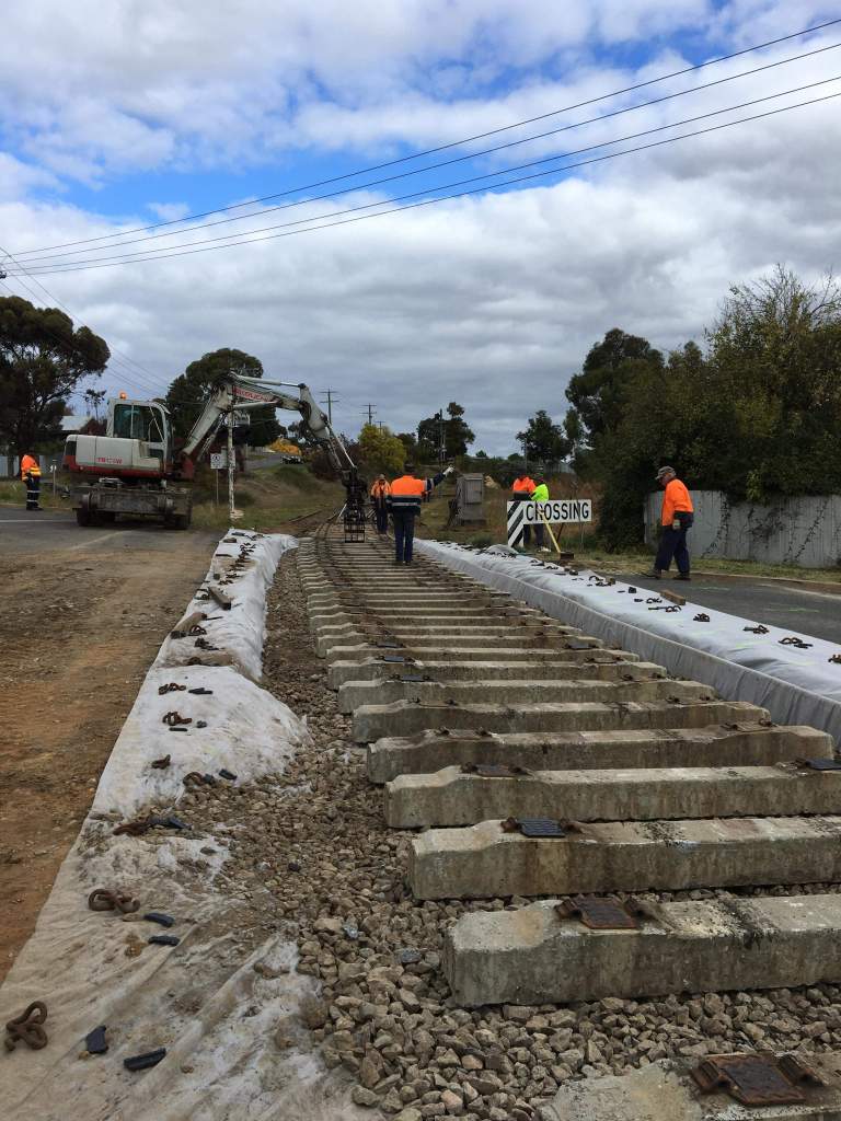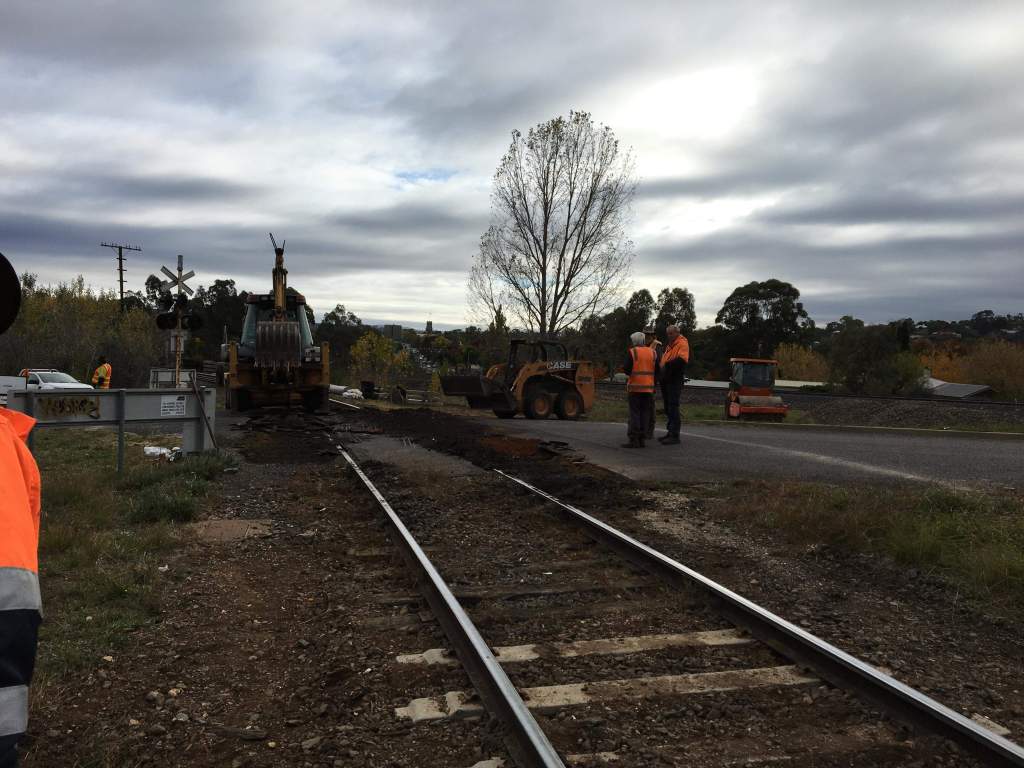 Once the crossing had been excavated to sleeper level, the big digger lifted the track, while the backhoe knocked off the old sleepers, a pretty enormous time and back saver!