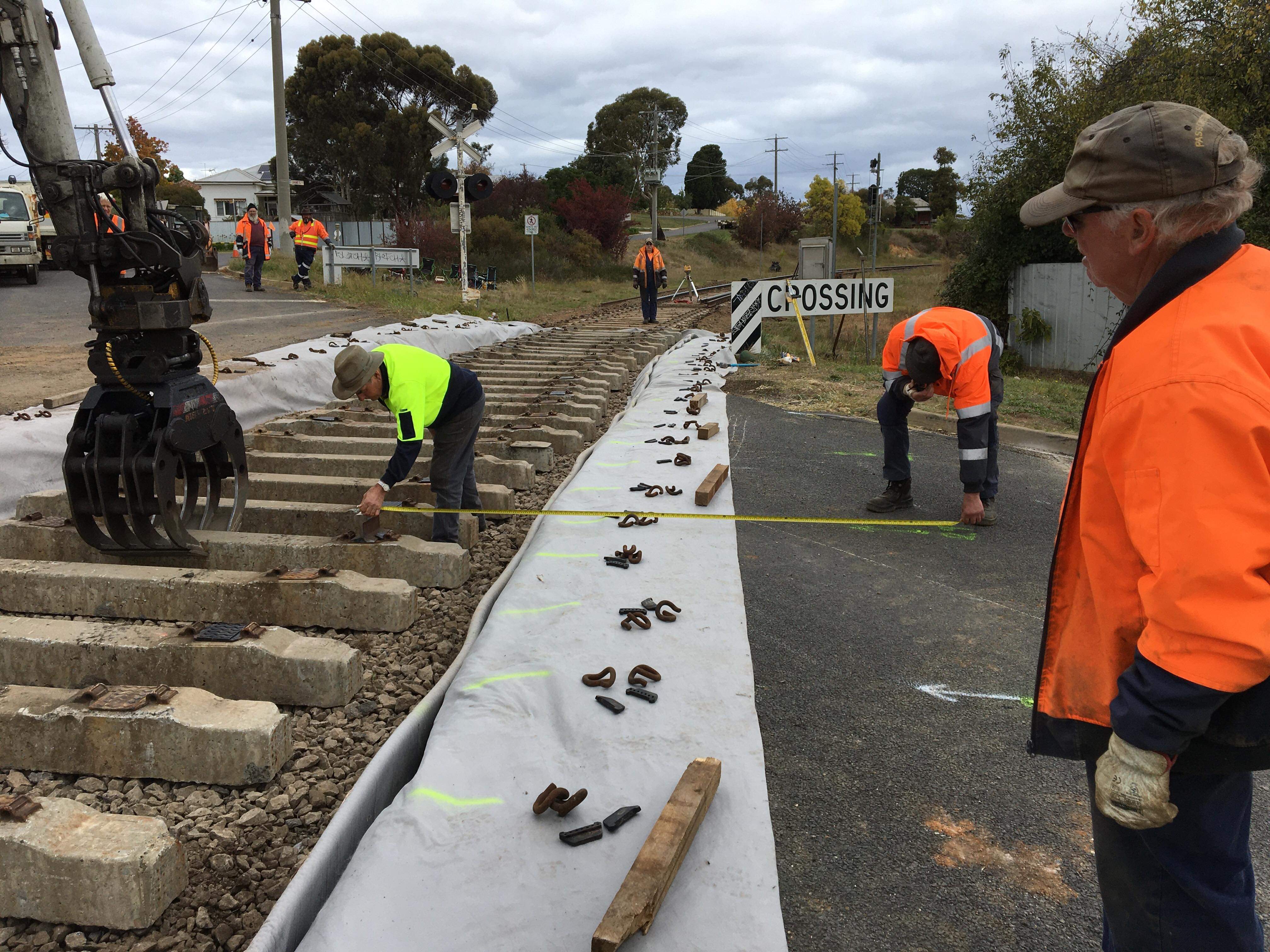 The old rails were dragged well clear, loose jewellery collected before the sleepers were loaded straight into a tipper for removal.