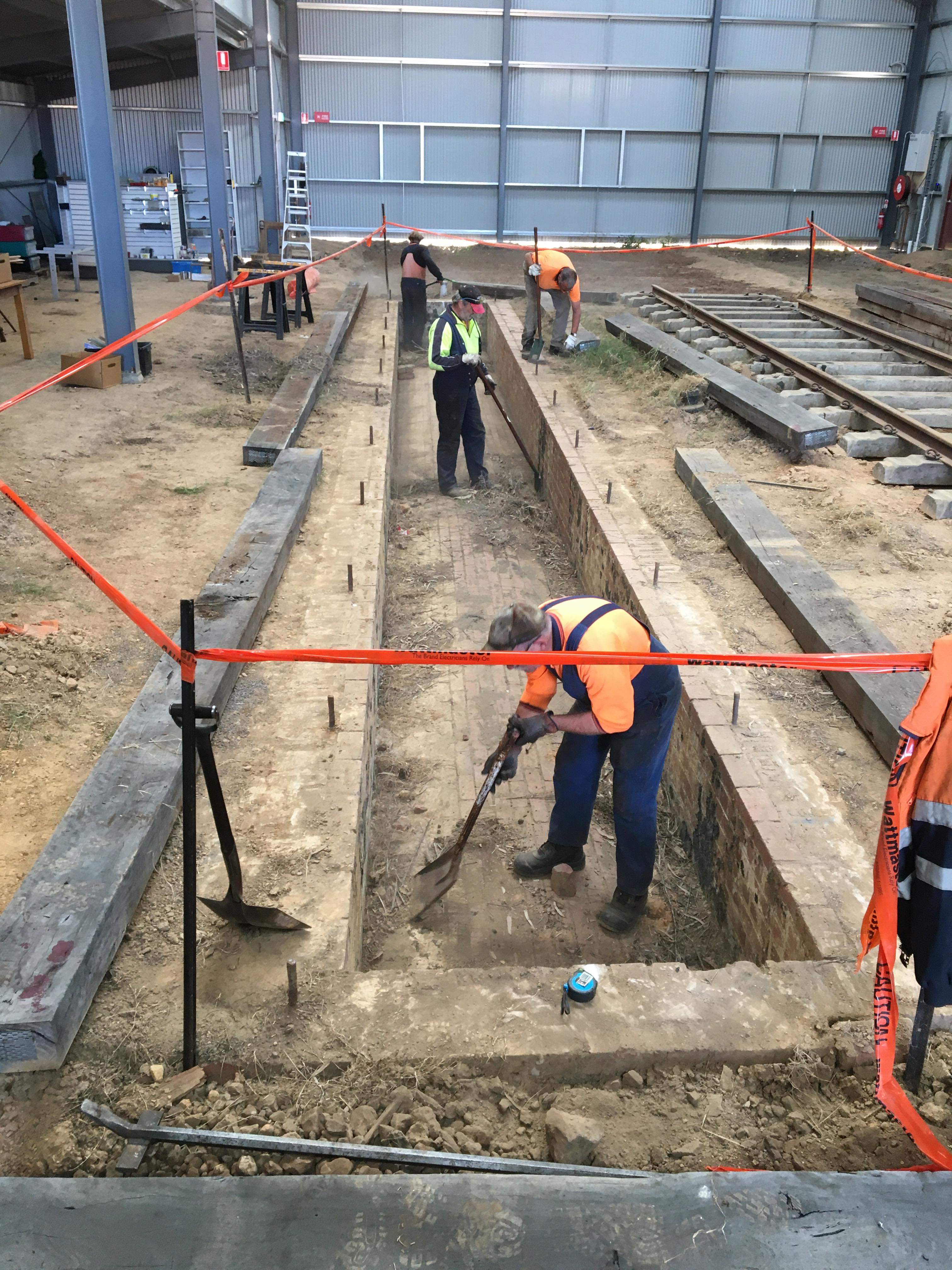 This afternoon saw us move into the loco shed, to make a start on installing the pit timbers, this will be one of tomorrow’s main tasks.