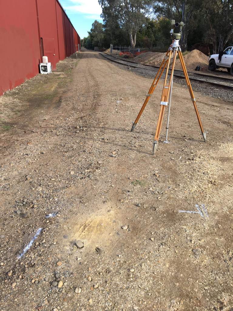 While we were busily clearing stuff in the way, Rolf was busily surveying the track layout for the workshop track, he’s not quite finished yet, however it’s all looking like it’ll work.