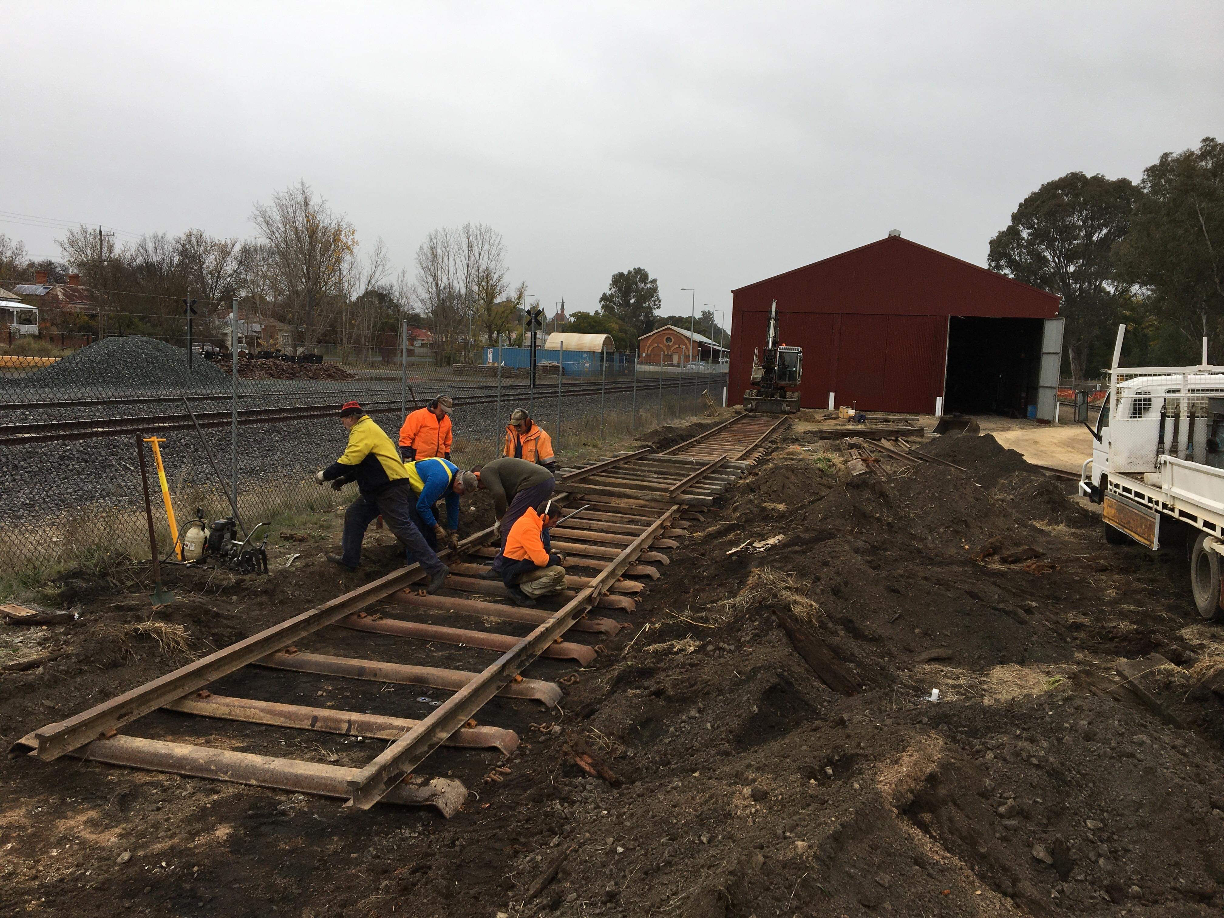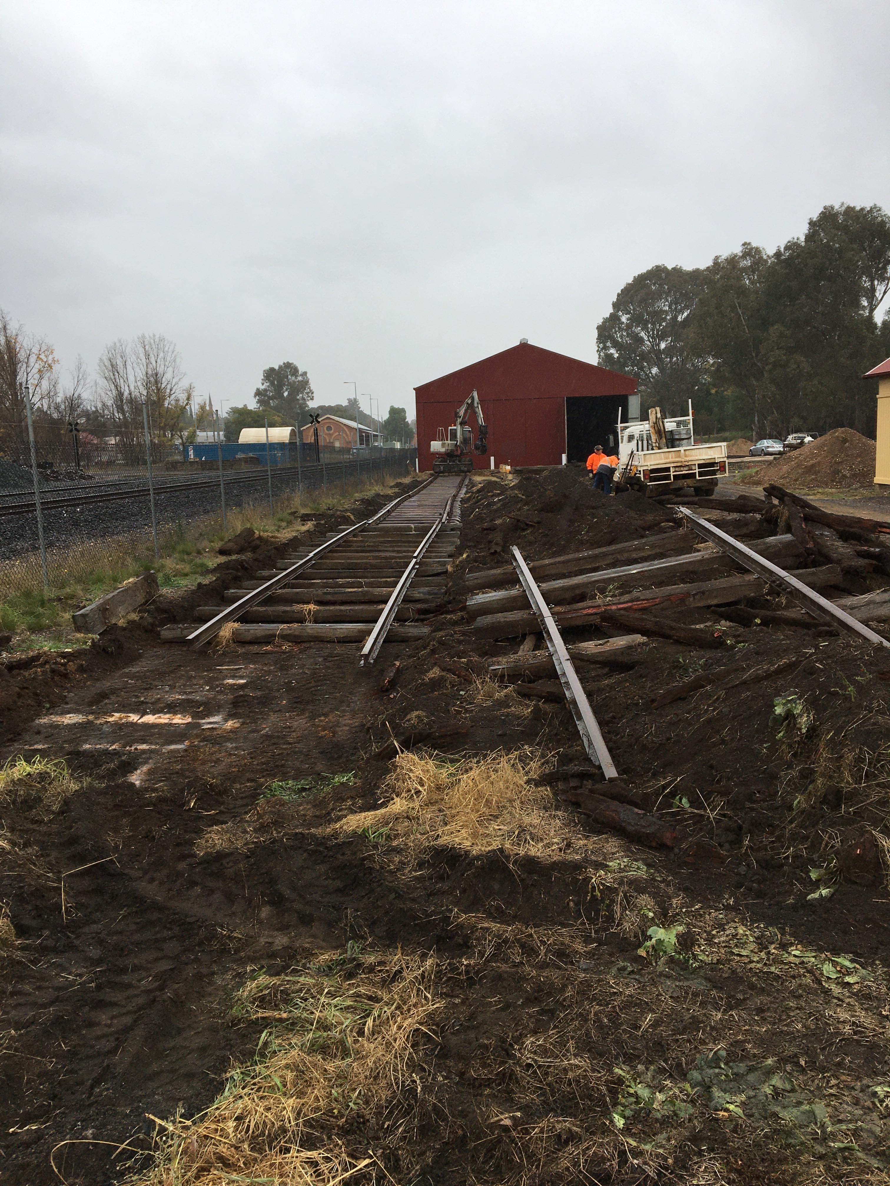 We’ve had two panels of 80lb steel sleepered track laying around for some time, so we bolted them onto the end of 80lb through the shed.