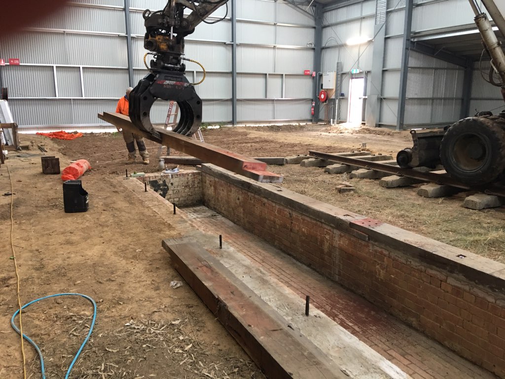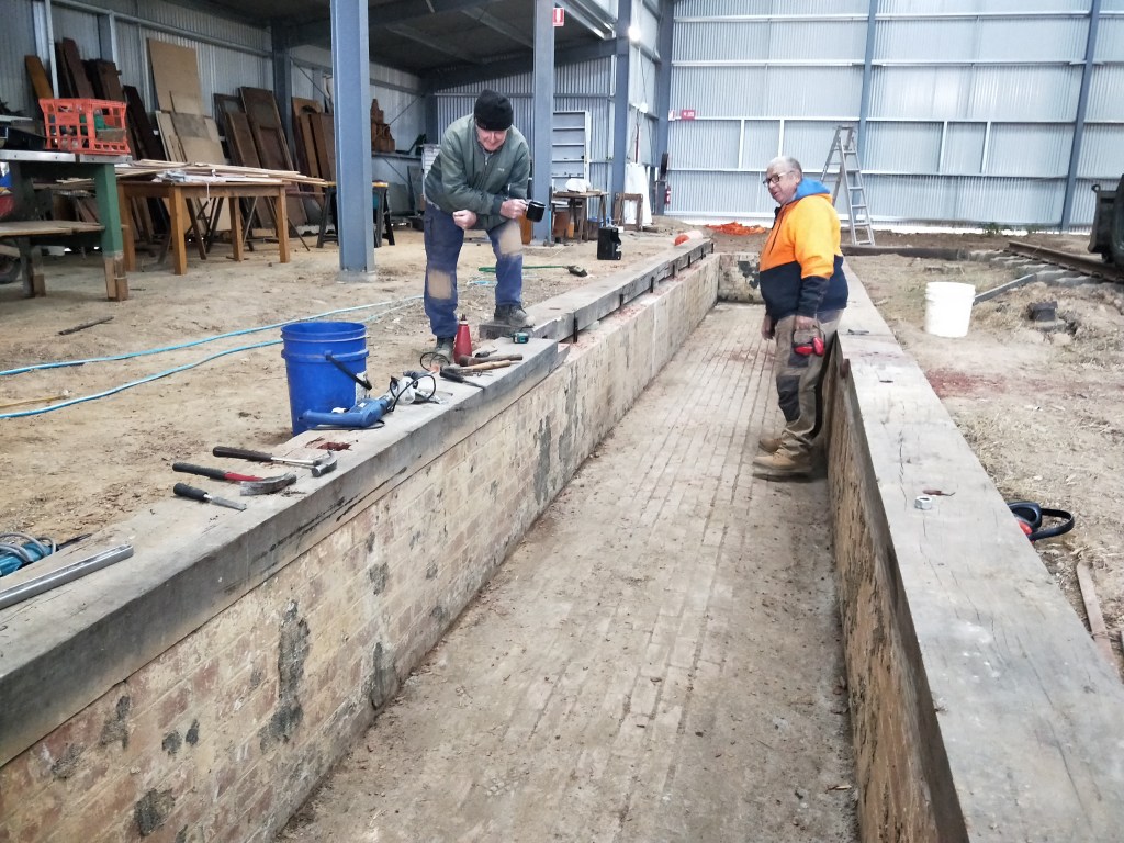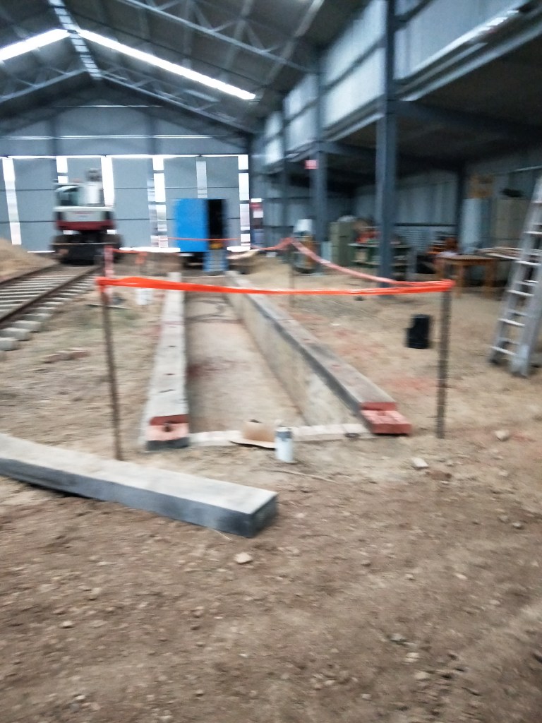 Today was spent in the shelter of the loco shed continuing with works on the pit timbers.