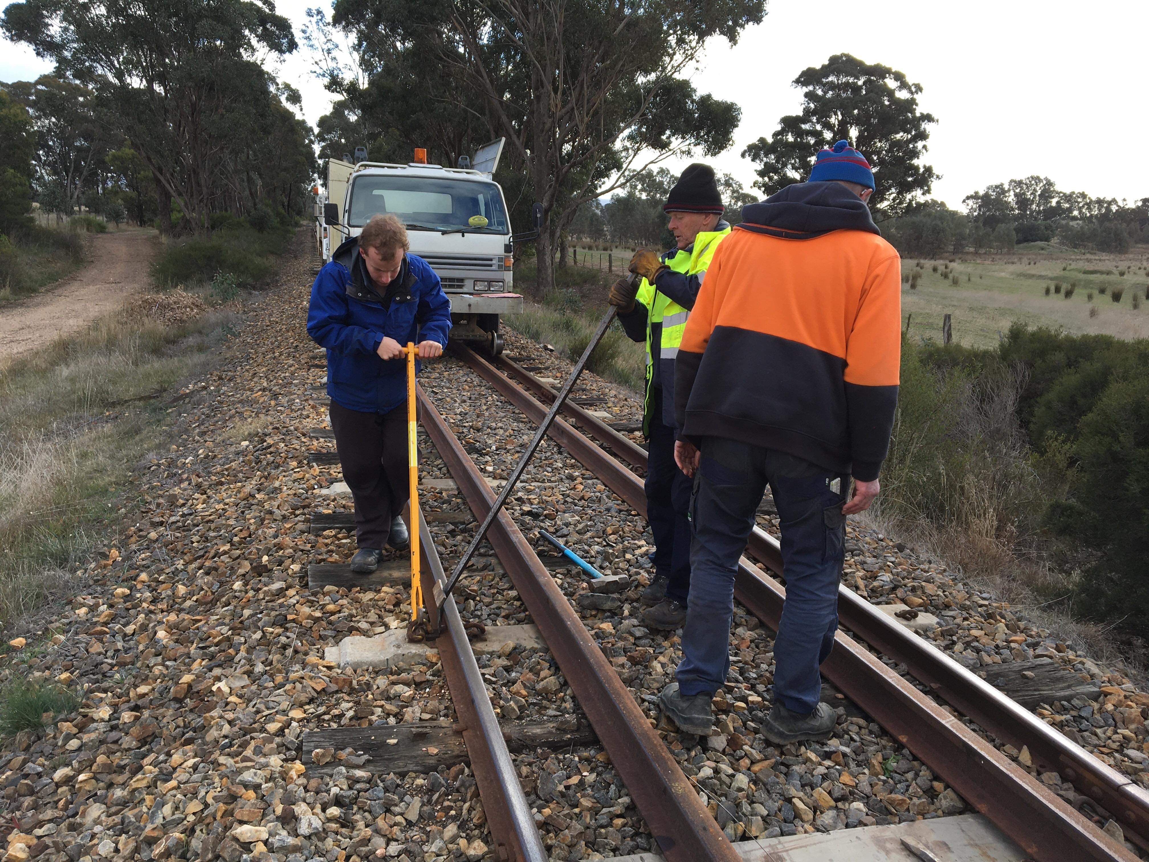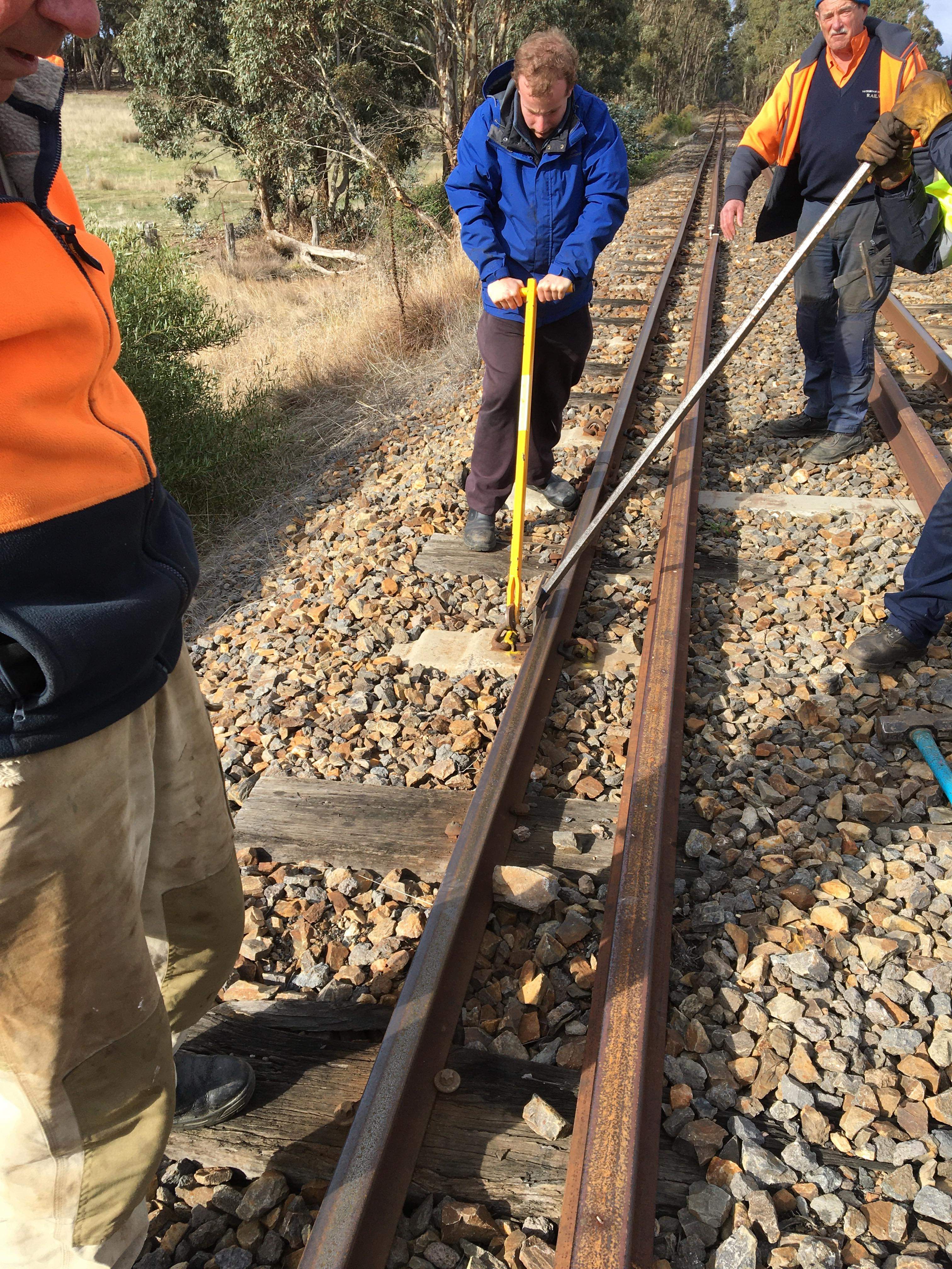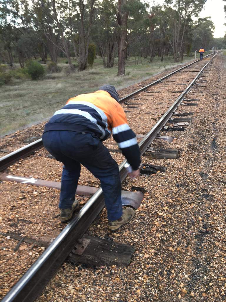 We took the opportunity of the big gang to remidy any faults found, largely loose bolts and in a few locations past Muckleford, outer metal biscuits were installed as the nearby timber was starting to hint it wasn’t going to hold gauge for much longer.