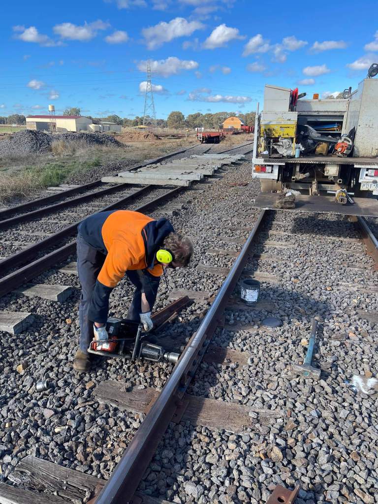 When we checked to make sure the sleepers were good enough to take a cross bore for a new rail, we decided it was time to replace the whole high leg of this short curve and install 1 in 3 concrete sleepers, as the overall timber condition was not great. It was also found the adjoining rails weren’t in as new condition, so we’ll replace the whole high leg with one single 40m rail to remove the joints in the curve.