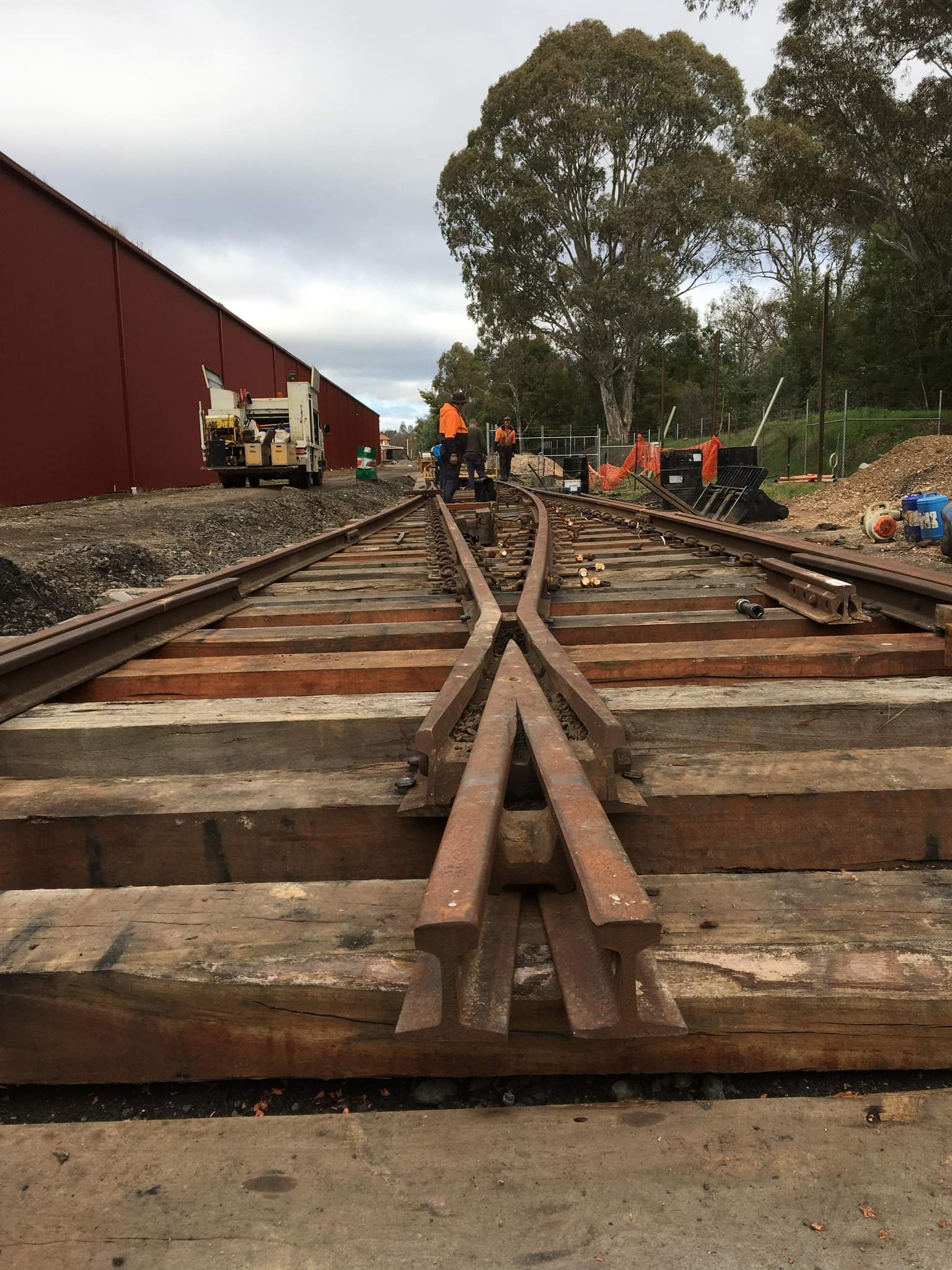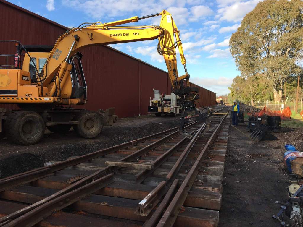 Instead of using the 2 closure rails to make the curved lead we replaced it with a single length of welded rail, mainly because the 2 separate rails were a bit short, possibly a mix up of rails during one of the many moves they’ve had or we’ve made a slight error in the setout phase, either way everything else fits perfectly, so we’re not too worried.