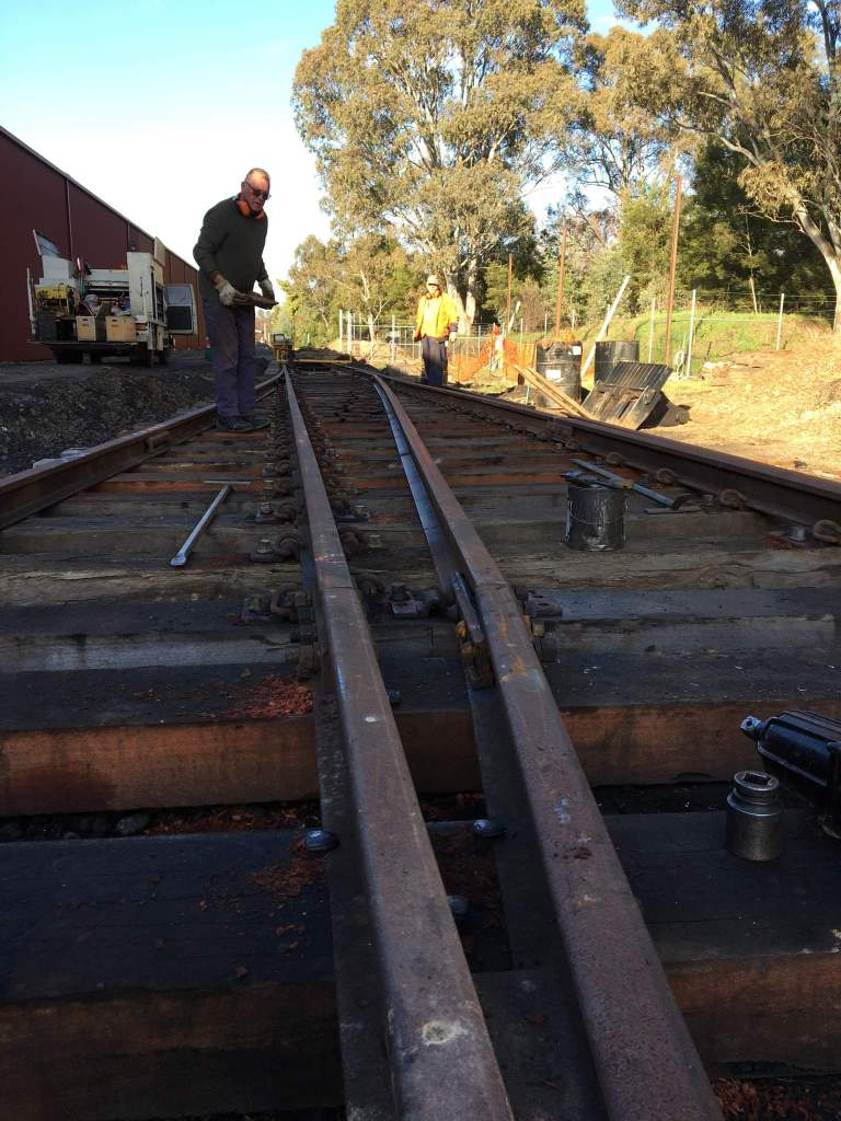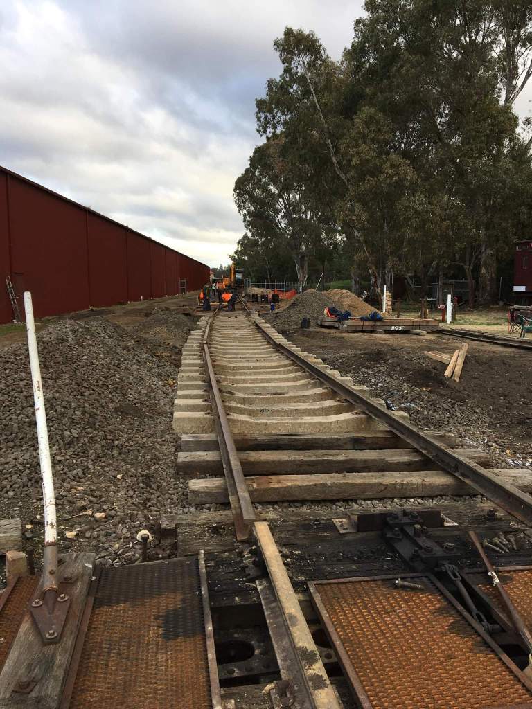 Another busy day at Castlemaine, with more works on the turnout and turntable approach track.