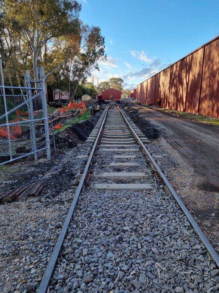 Next week, all going well, will see more work at Castlemaine, with a start being made on installing track in the loco shed West road. Check back Monday for details of Tuesday.