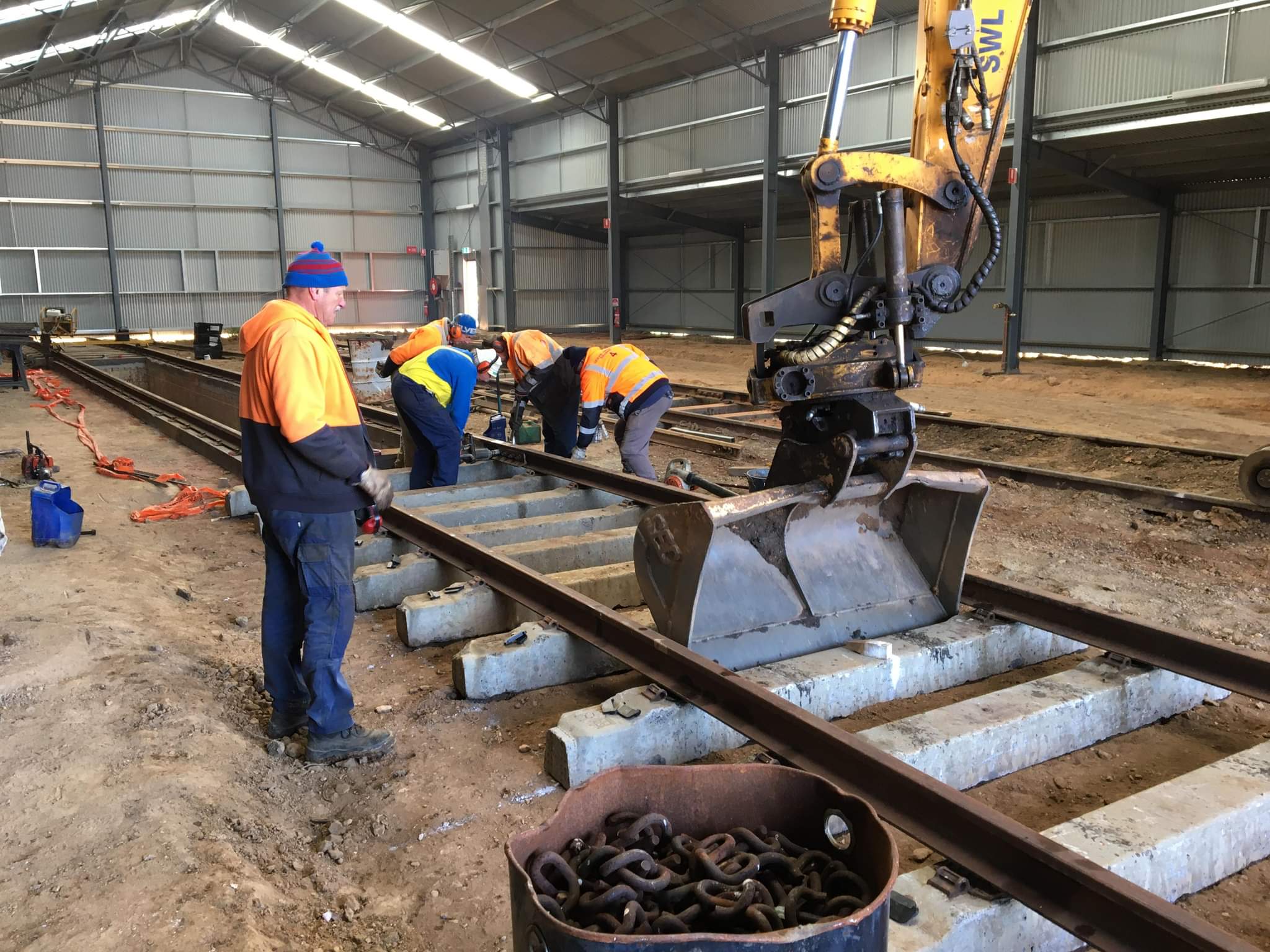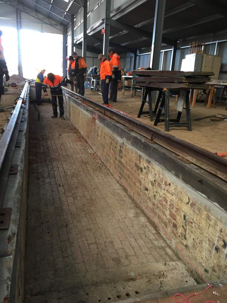 We recovered enough long rail from the Guildford Track to be able to do from the back of the shed to the front of the pit in a single rail, which made the job much easier.