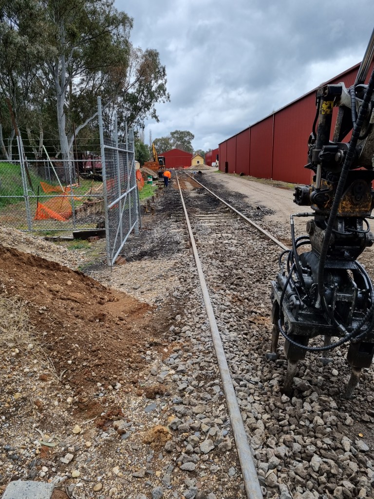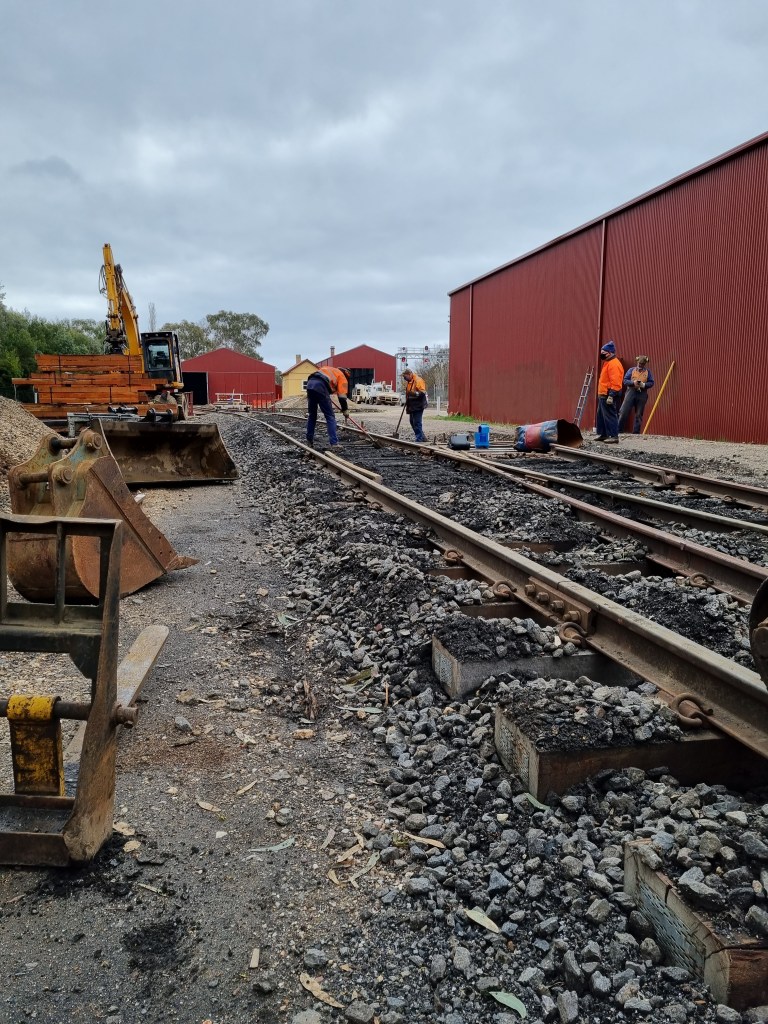 We’ll be back here tomorrow from 8.15am, we’ve still got lots to do, with a lot of mess needing tidying, lots of timber sleepers to bundle up and hopefully we can get more of the loco shed track tamped up too.