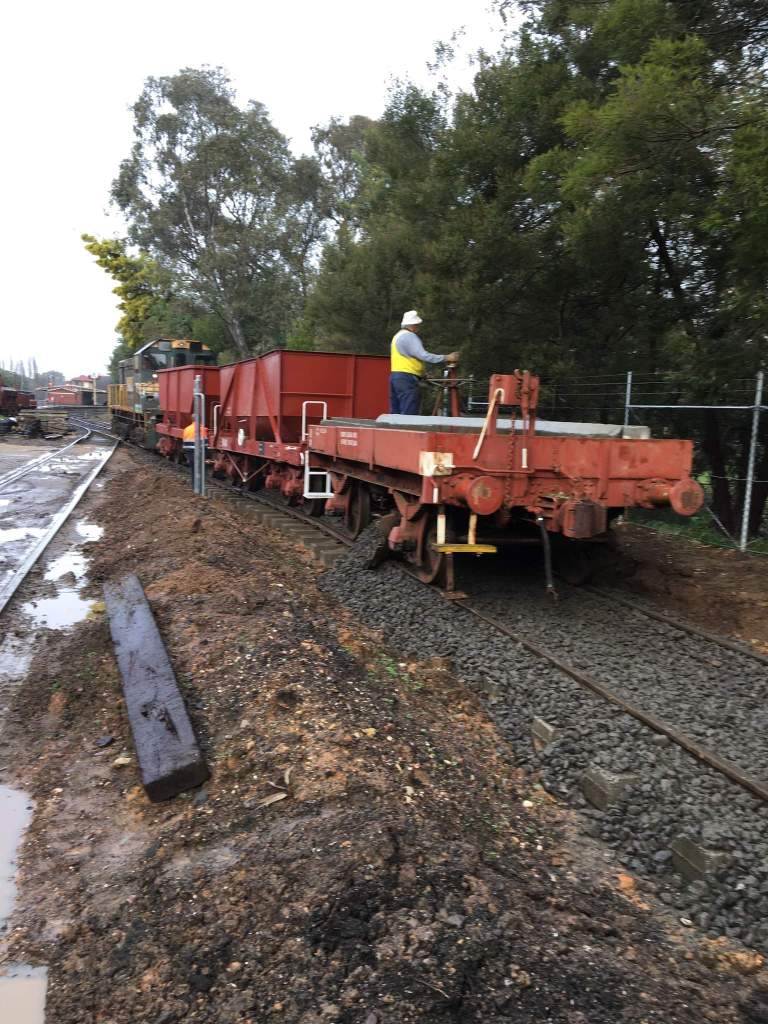 We’d previously manually added ballast to get the track usable, enabling our ballast train to venture out for the drop. Again Daylesford’s plough was the first real rail vehicle to pass onto the new rails!