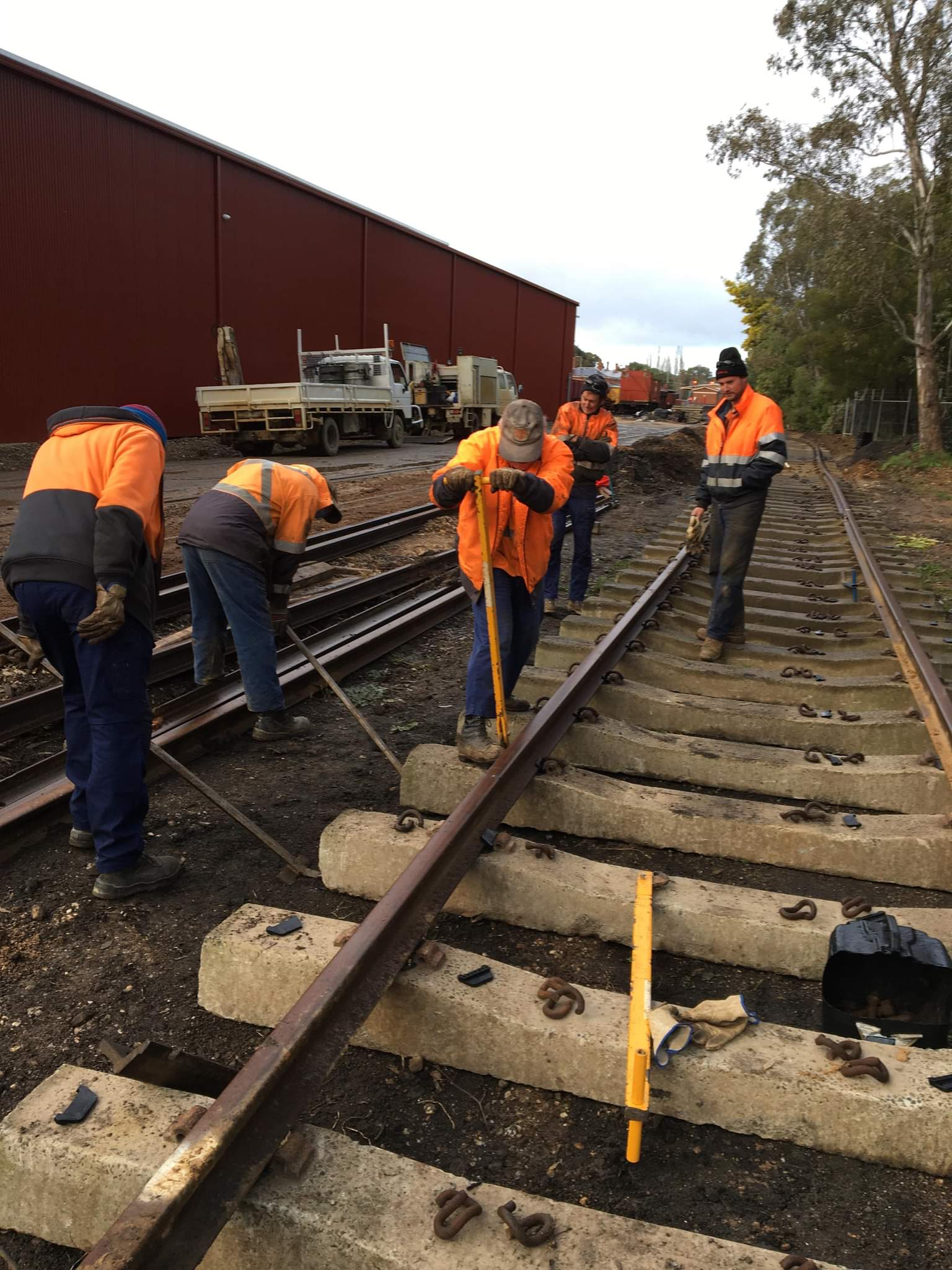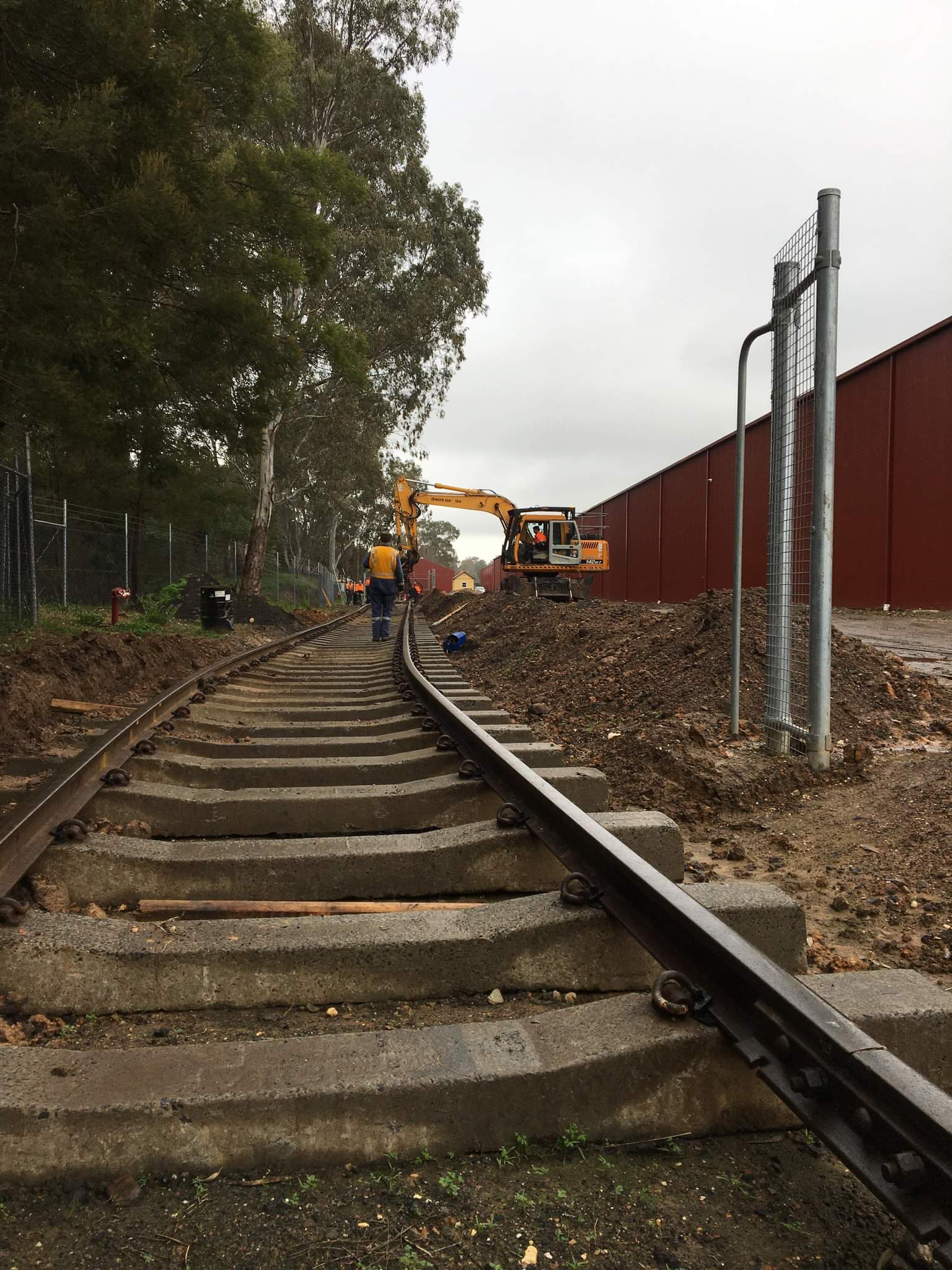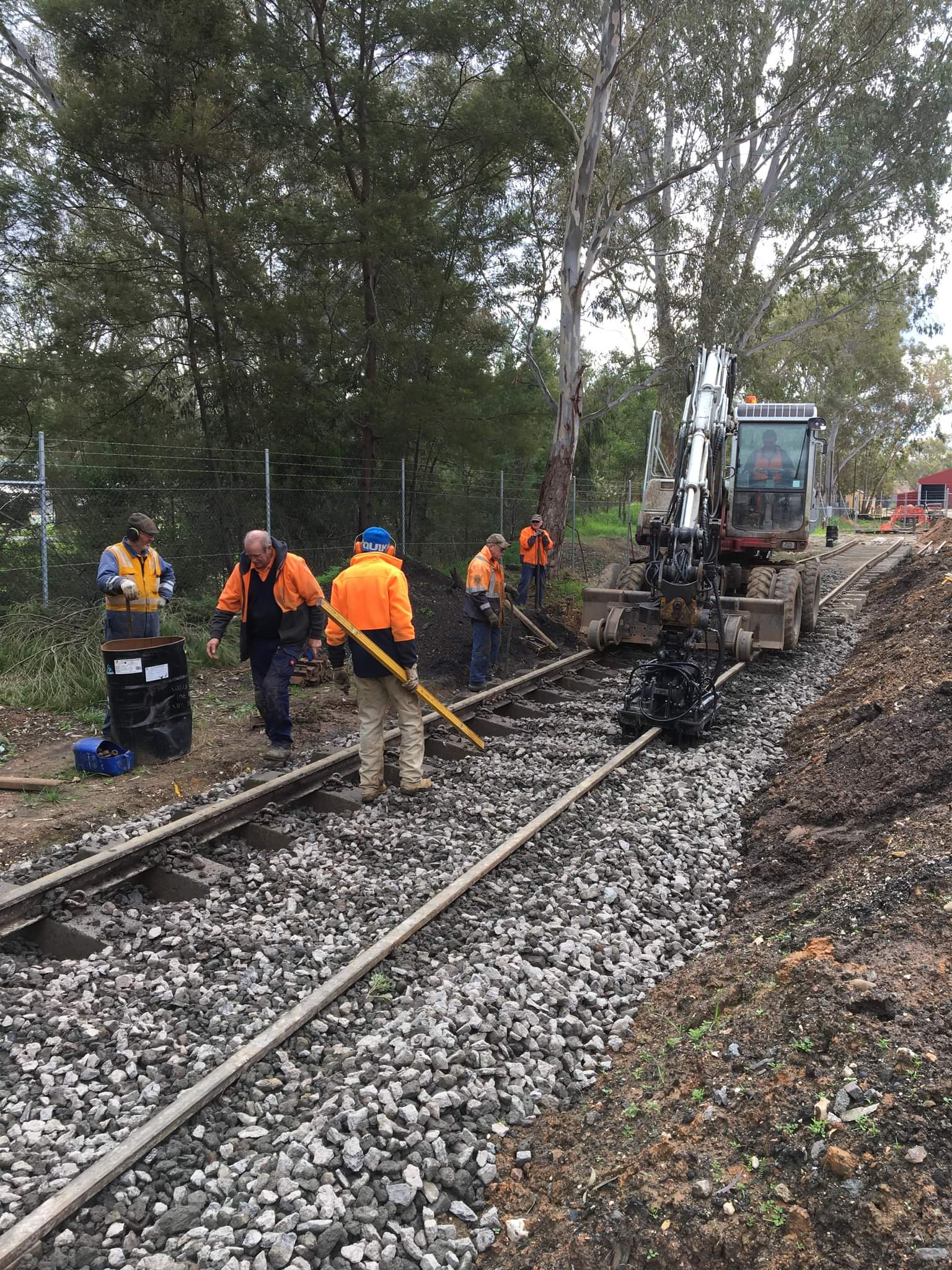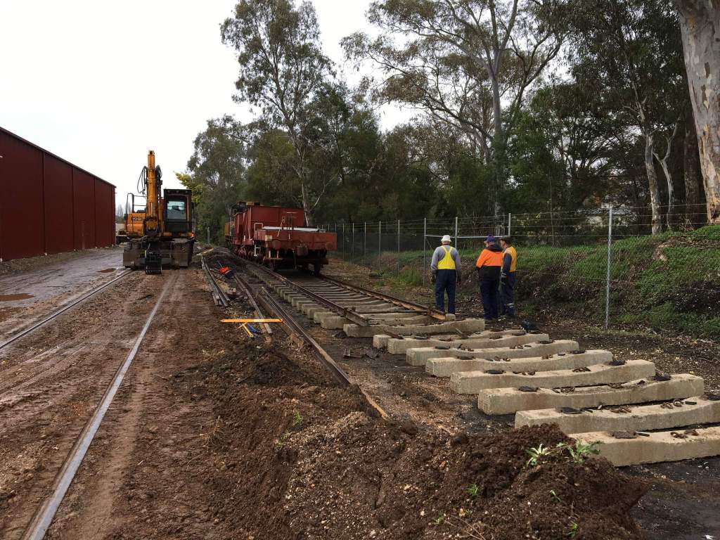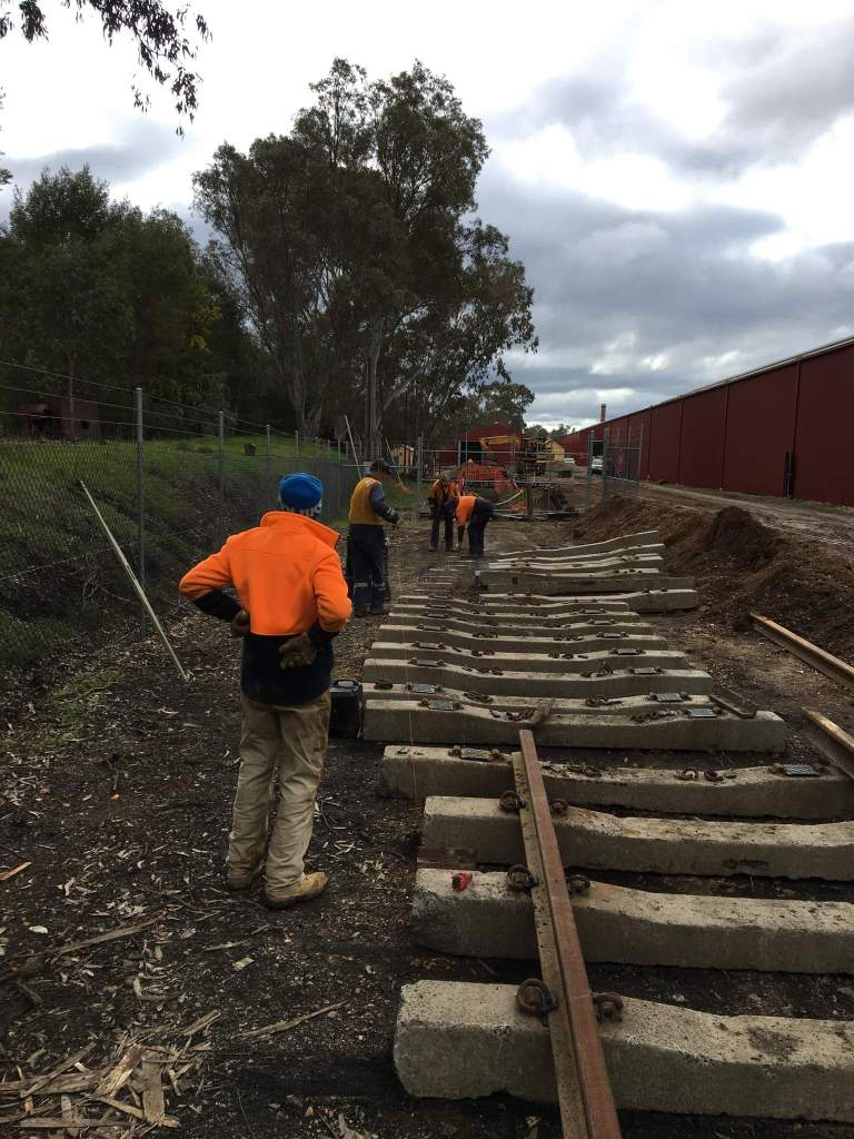 While all this was happening, we sent the Y class to Muckleford with the now empty ballast wagons to free up some more space in the yard. You can see from this view we’ve still got some lifting to do, however the area through the gates and near the fire hydrant is complete. This siding will become mainly storage for the next few months, so this standard is far in excess of what’s needed for that.
