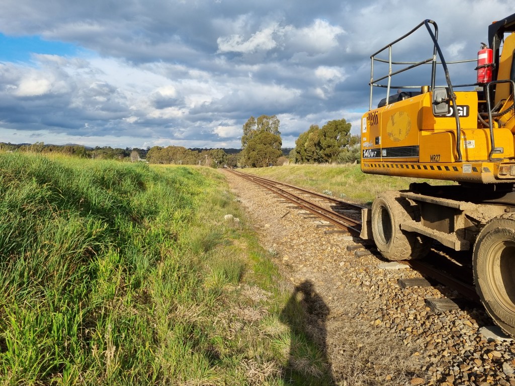 So today we remove all the fastening from the 60lb, swapped the rails over and we’ve clipped up the new rail at every concrete sleepers. The big digger proved very good at this task.