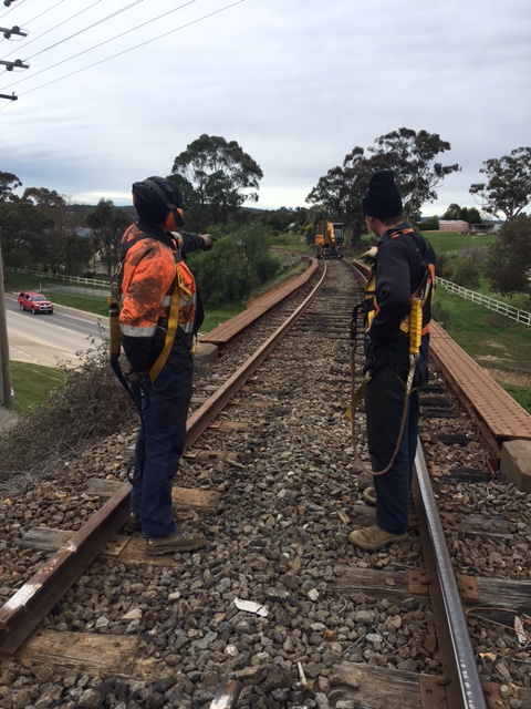 We’ve re-railed the low leg over Pyrenees Hwy, which given all the harness and anchoring gear used to do it safely, was much slower than regular re-railing, however we still managed it in good time.