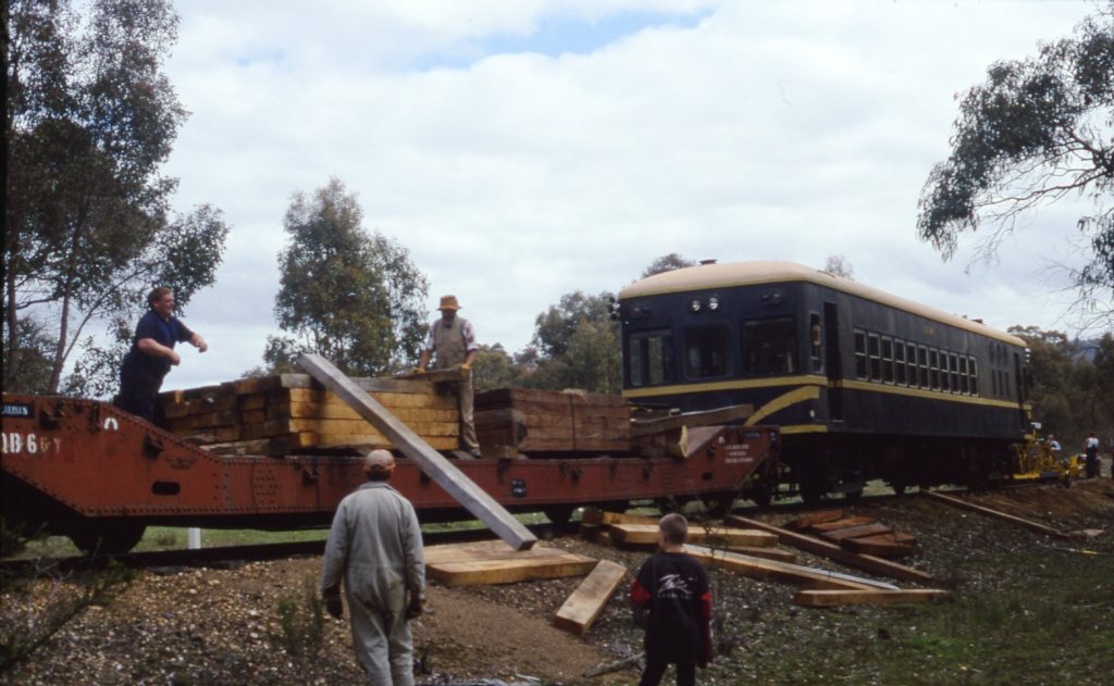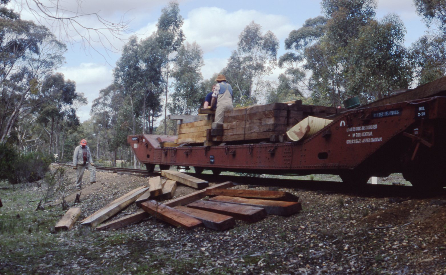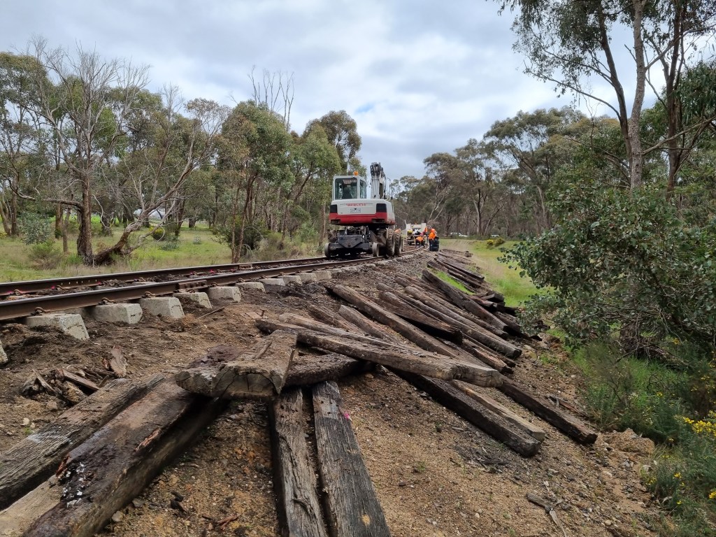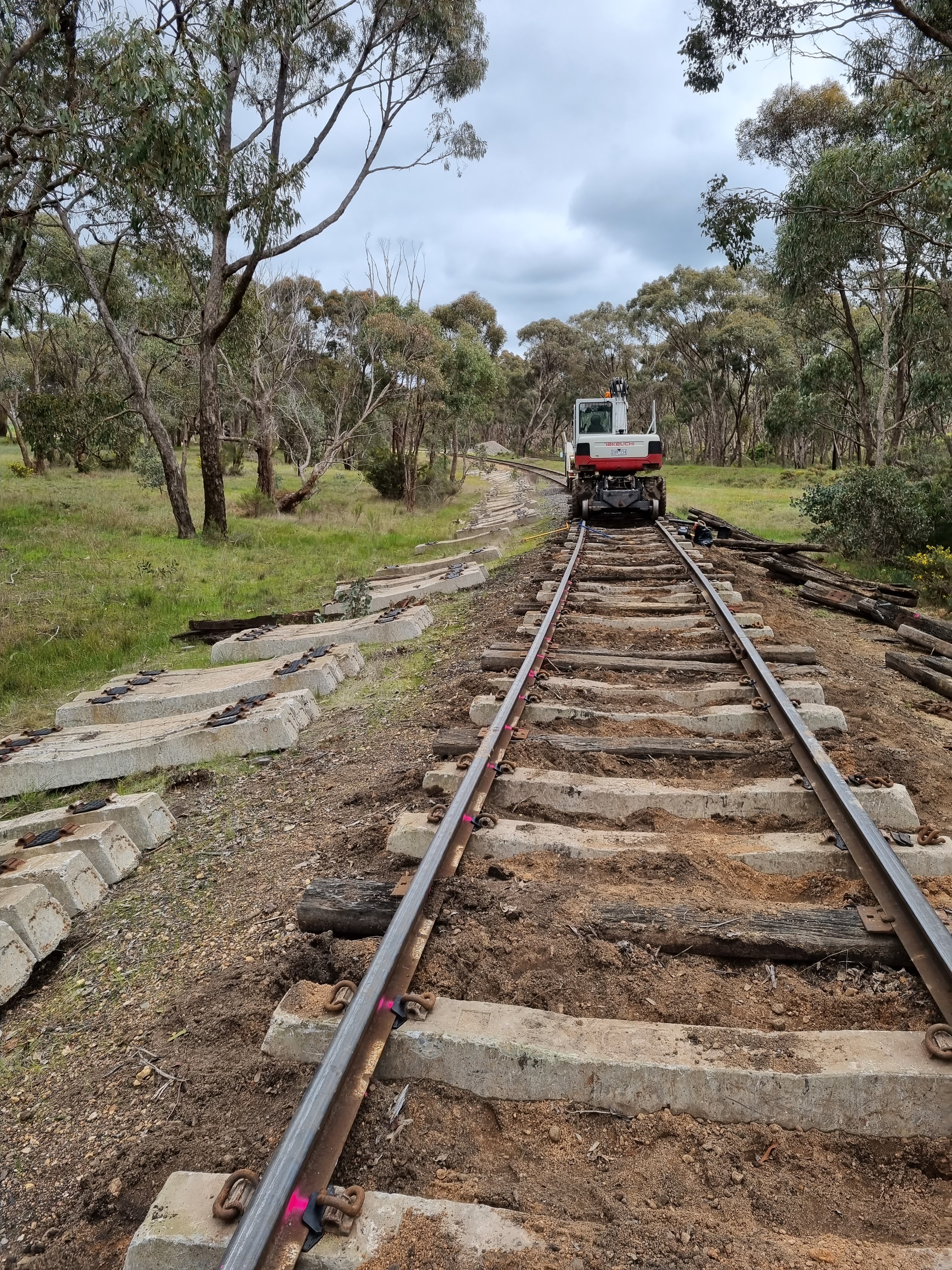 Just as a note re life span of these timber sleepers in our climate, the grey box are weathered and probably about 3/4 of their new size, but still usable (we’ll cascade them into Maldon and Muckleford Yards), the red gum is fully life expired, generally coming out in lumps.