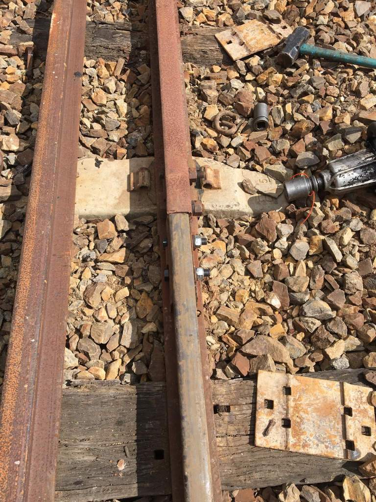 At the UP end, we’re into the straight and we’ve found a short welded Junction rail, to drop the rail size from 94lb to 80lb so we can use standard 80lb/60lb junction plates. As we progress the re-railing this length will get cascaded along. We’ve got a similar piece ready for the other leg.