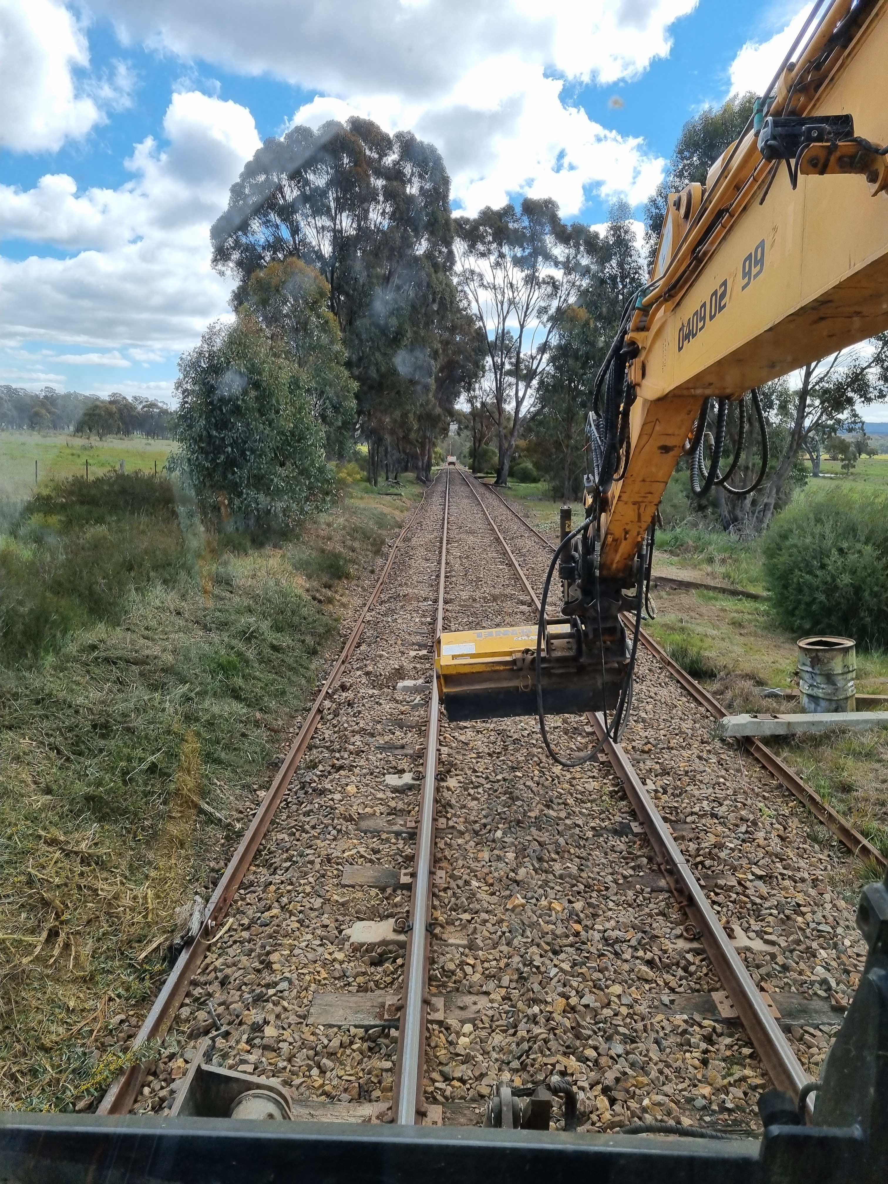 Today’s job focused on moving sleepers and rail out to Maclise St. However the opportunity of a loco at Muckleford and a flail mower at the ready, was too good to pass up.
