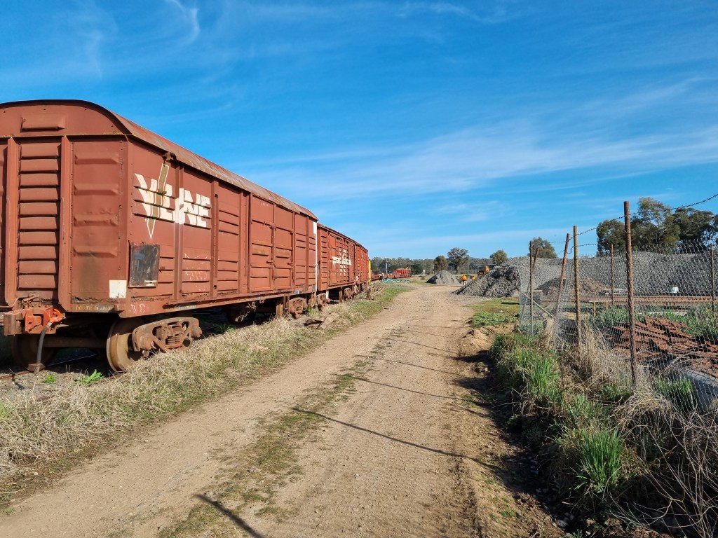 Once Muckleford had been tidied, a train load of sleepers and rail were discharged trackside at Maclise St level crossing ready for the rebuild there in a fortnight. While there a bit of re-arranging, tidying, weedspraying and housekeeping was undertaken, all in aid of making the job that little bit easier.
