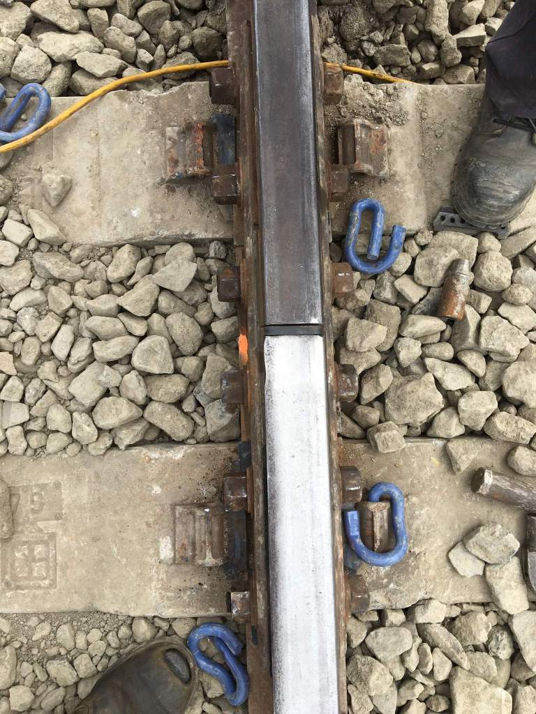 Job one was cutting the rails to the correct length, now a keen eye will note that these cuts seem to give a big gap, which they did, however this was the mark we placed when the rail was at its warmest temperature yesterday, which must have been right as it grew back to that size this afternoon.