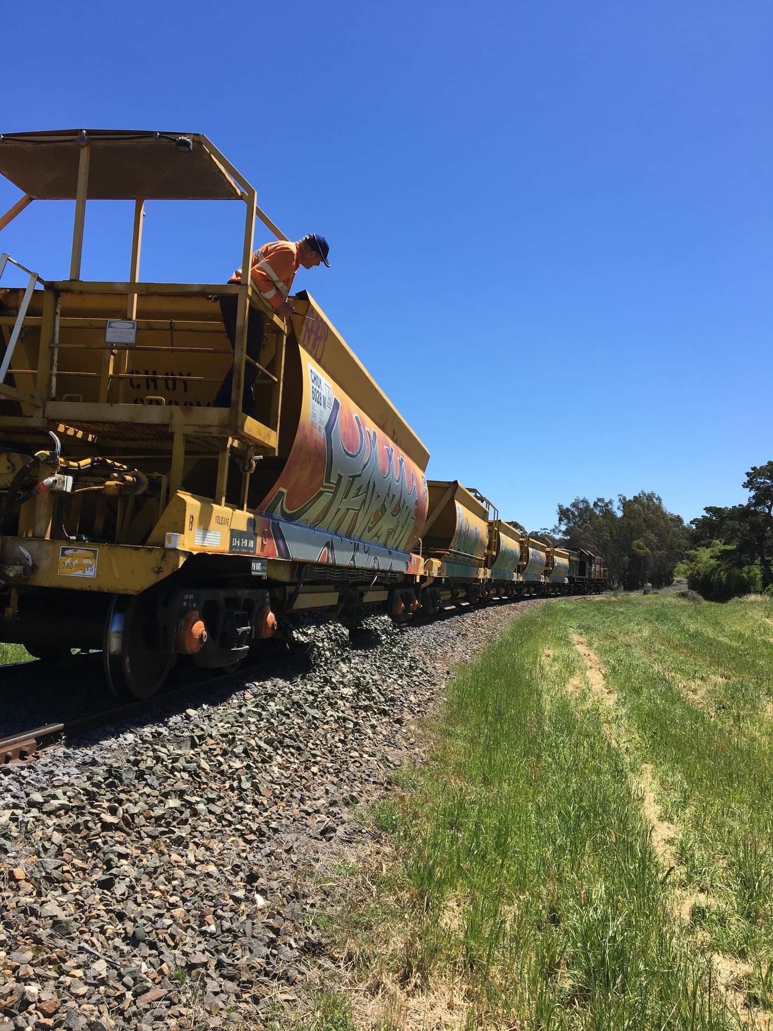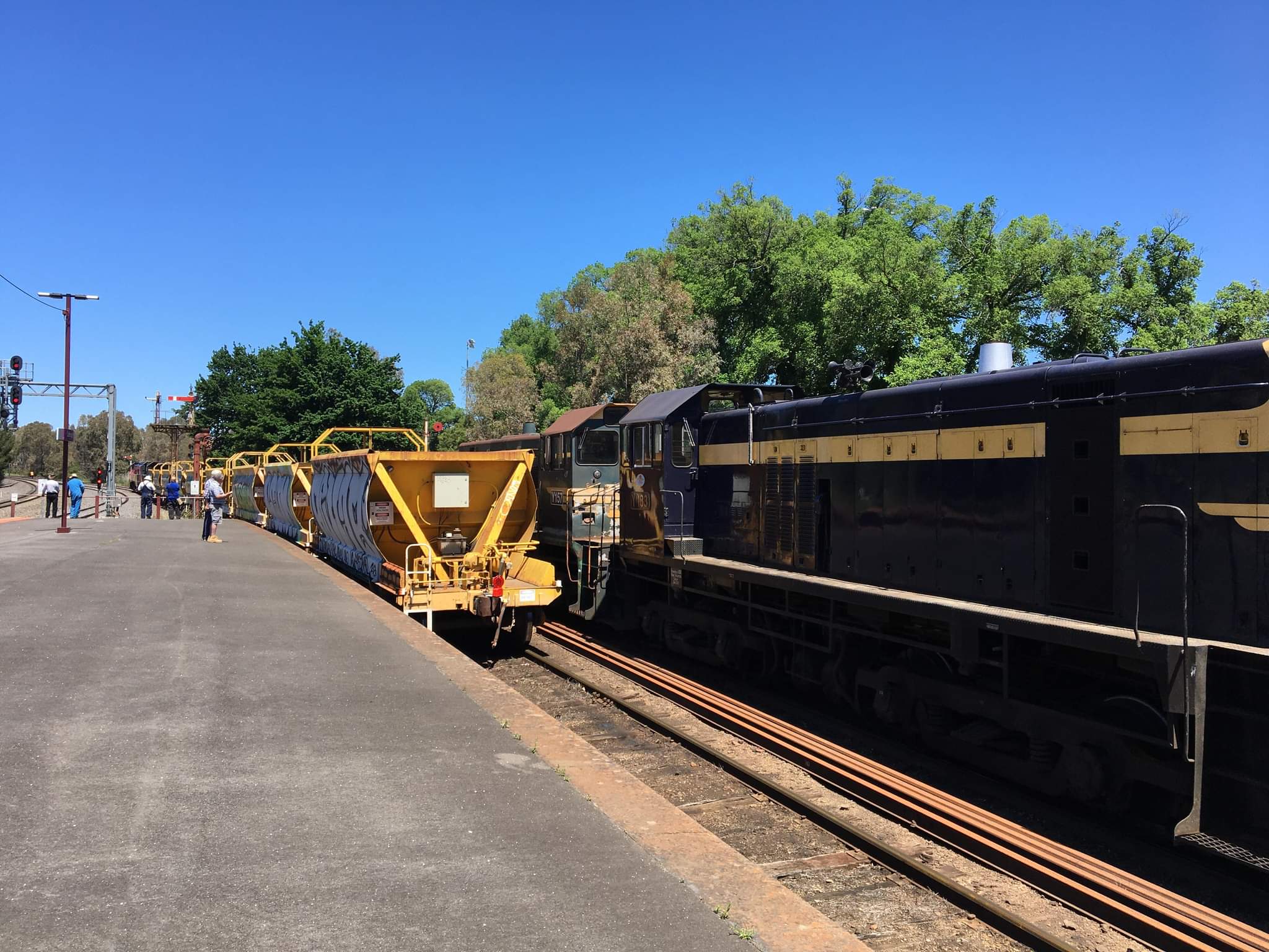 A rake of ballast wagons arrived, onto our track! The owner of the wagons inherited them loaded, which wasn’t ideal given they needed some maintenance before heading out on their next major assignment, so between SSR, Bendigo Rail Workshops and us, we devised a method of emptying the wagons that was beneficial to all parties.