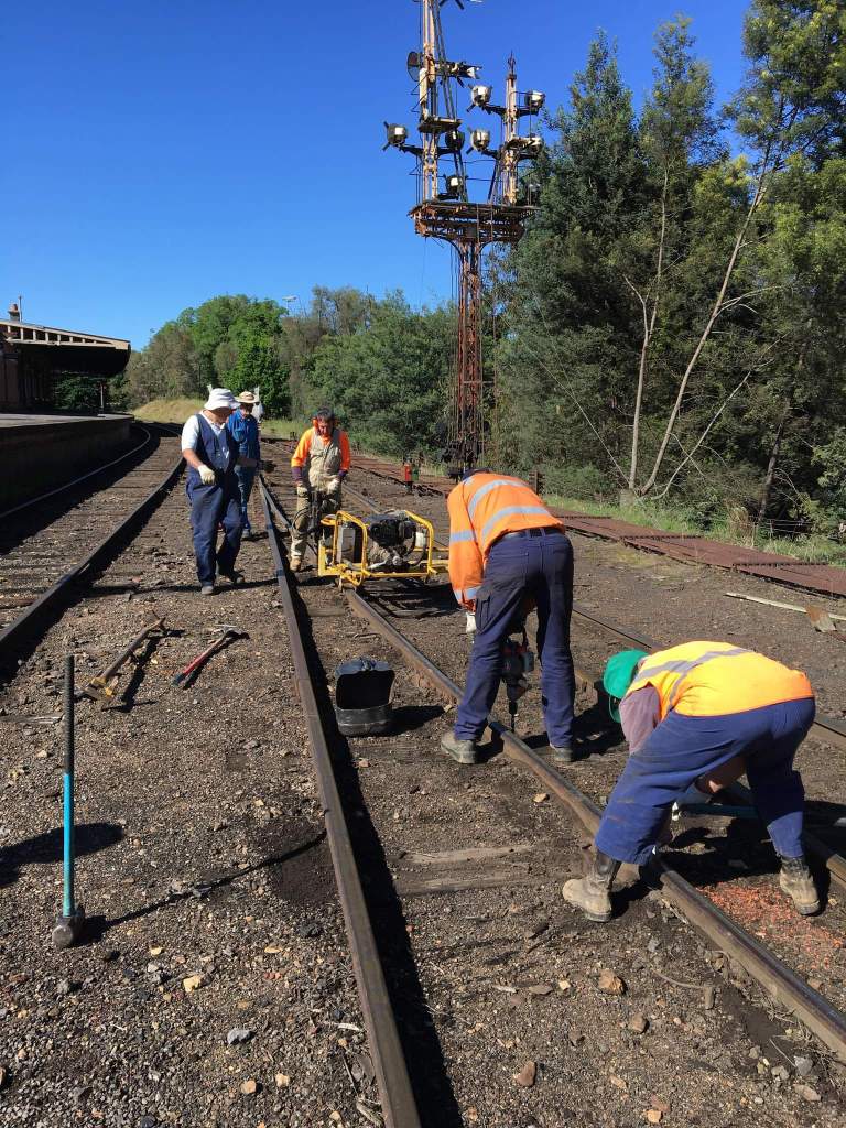 Then it was onto cross boring a turnout in Castlemaine Yard. The issue really being the timbers are still adequate, aging but adequate, however the dog screws that we’re used had bent over, leading to widening of gauge. So they were whipped out and good dog spikes installed in there place and just like that the gauge issue was resolved.
