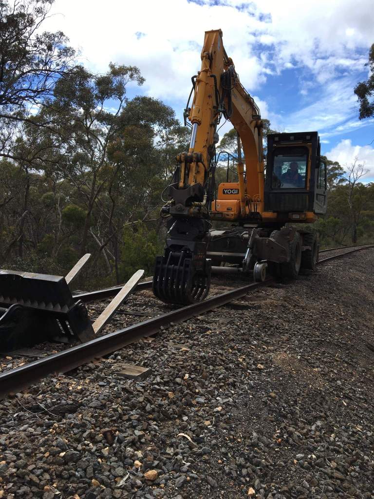 We also used the trip through to Maldon to get both of the diggers and attachments back home. It was quite convenient having one to change the sleepers and one to tamp them up.