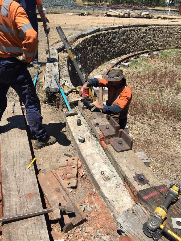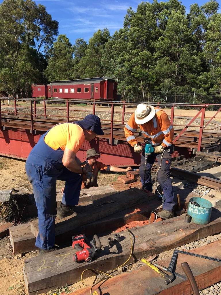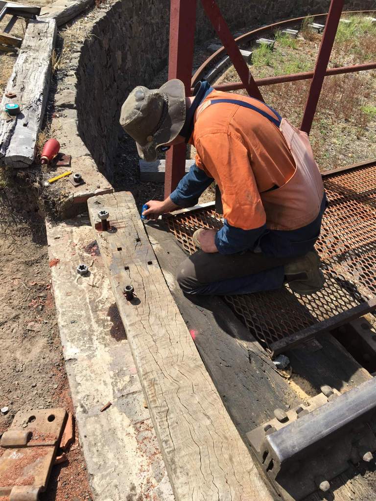 Tomorrow, we’ve got a train booked in to drop off the relevant materials to allow. construction of the turnout to continue While we’re waiting for that we’ll do a full check over the turntable, tightening all the bolts through the timber work and preparing what we can for the next steps.
