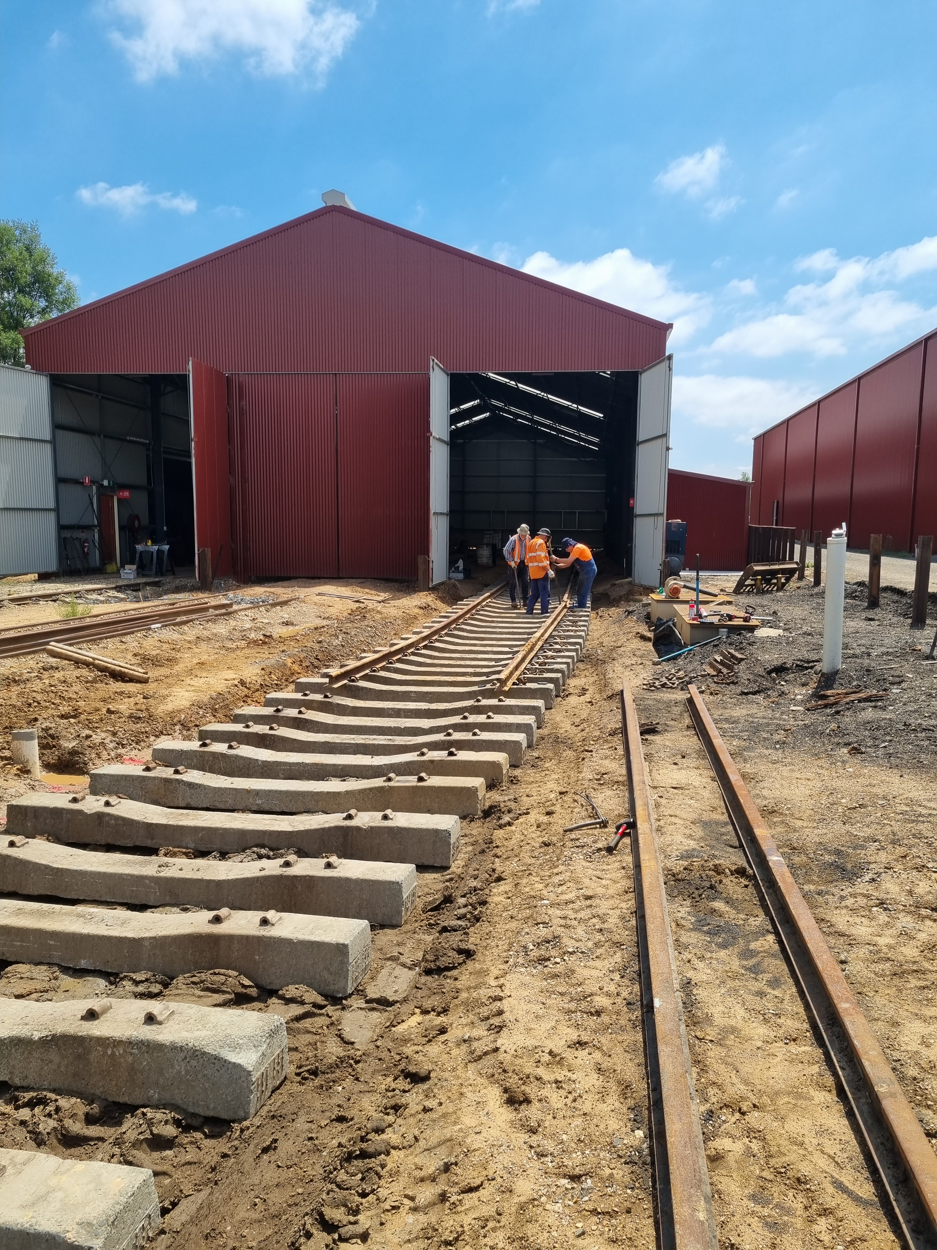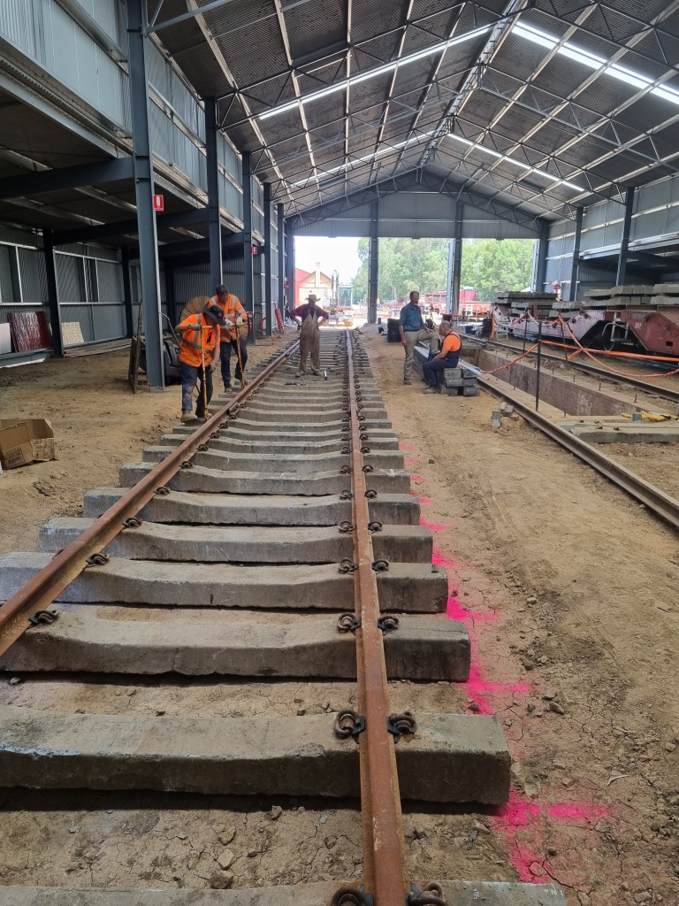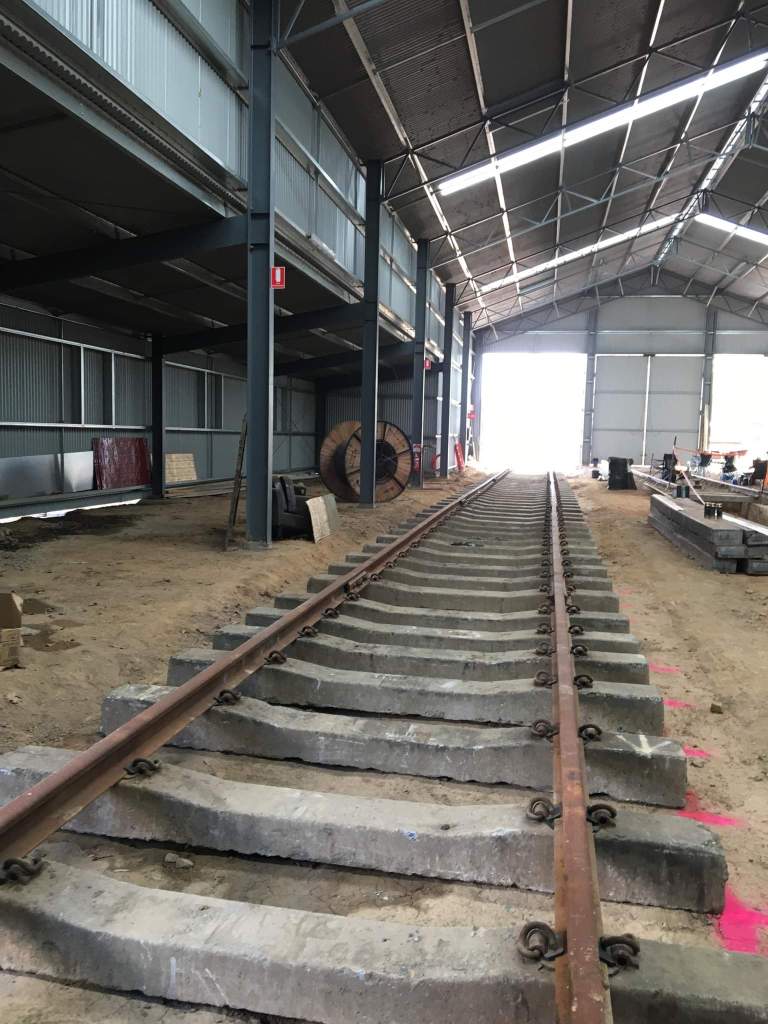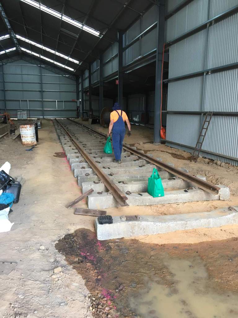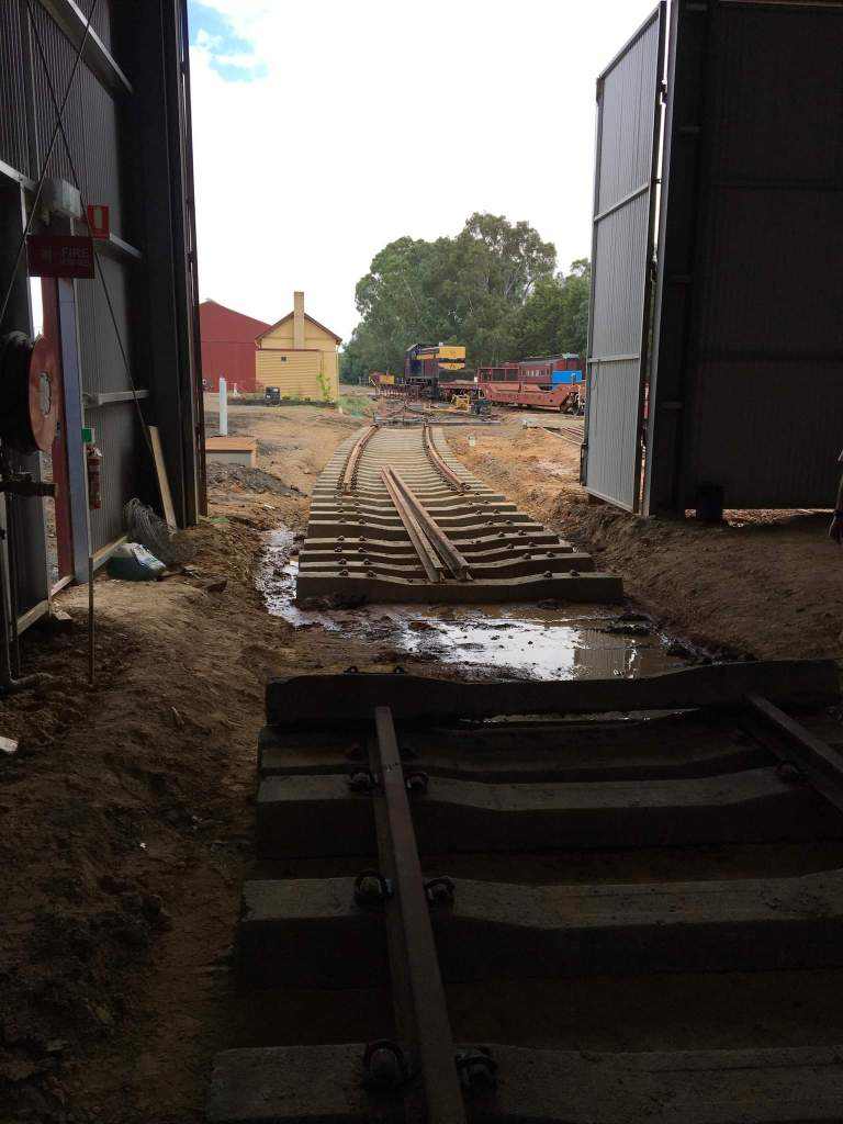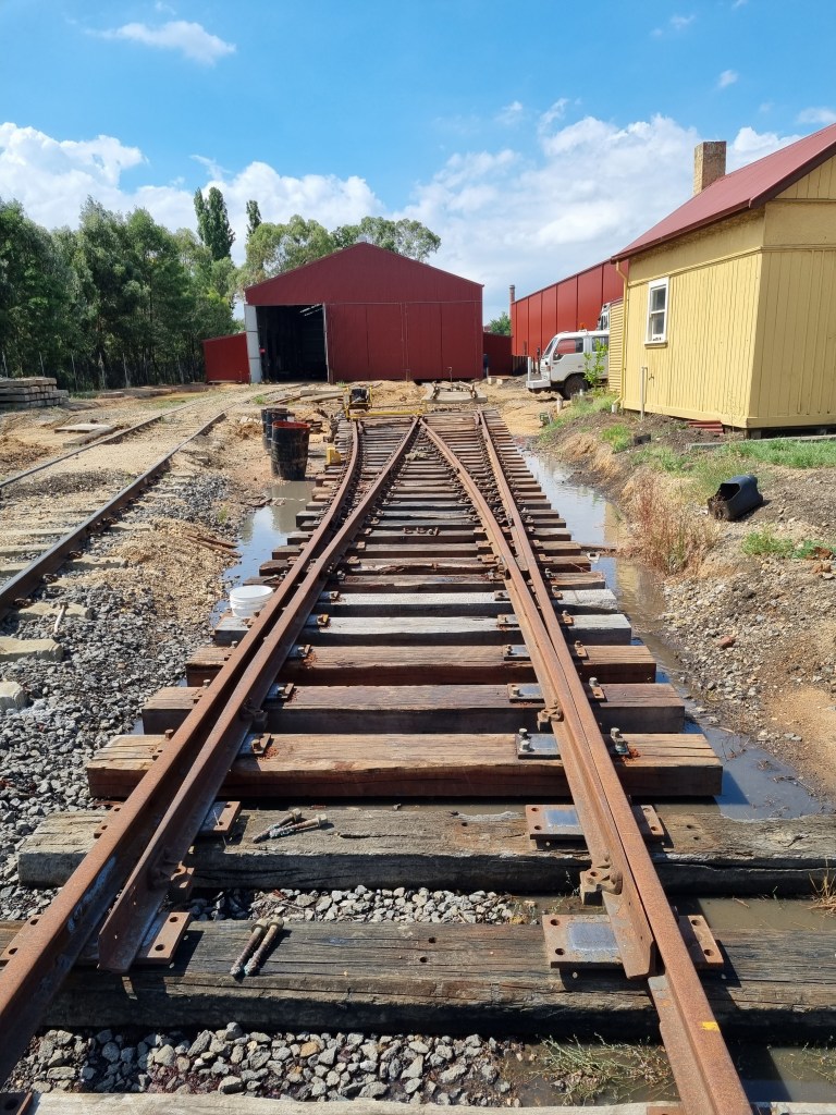 As we’re now taking a break from Castlemaine to go Bridge repairing, we’ve left a section out just inside the shed doors to help with access, as stepping over the unballasted track is not fun for anyone.