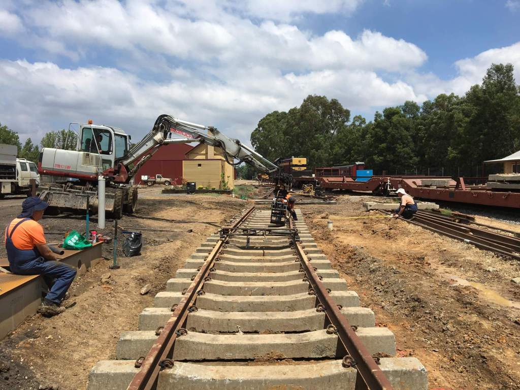 The last rails for today’s efforts being lifted in, we’ve used 80lb rail here, as we still have a good stock of that in moderate lengths.