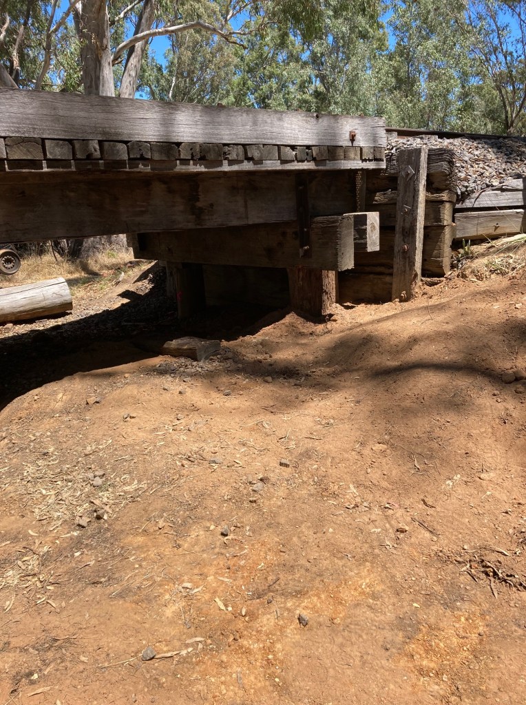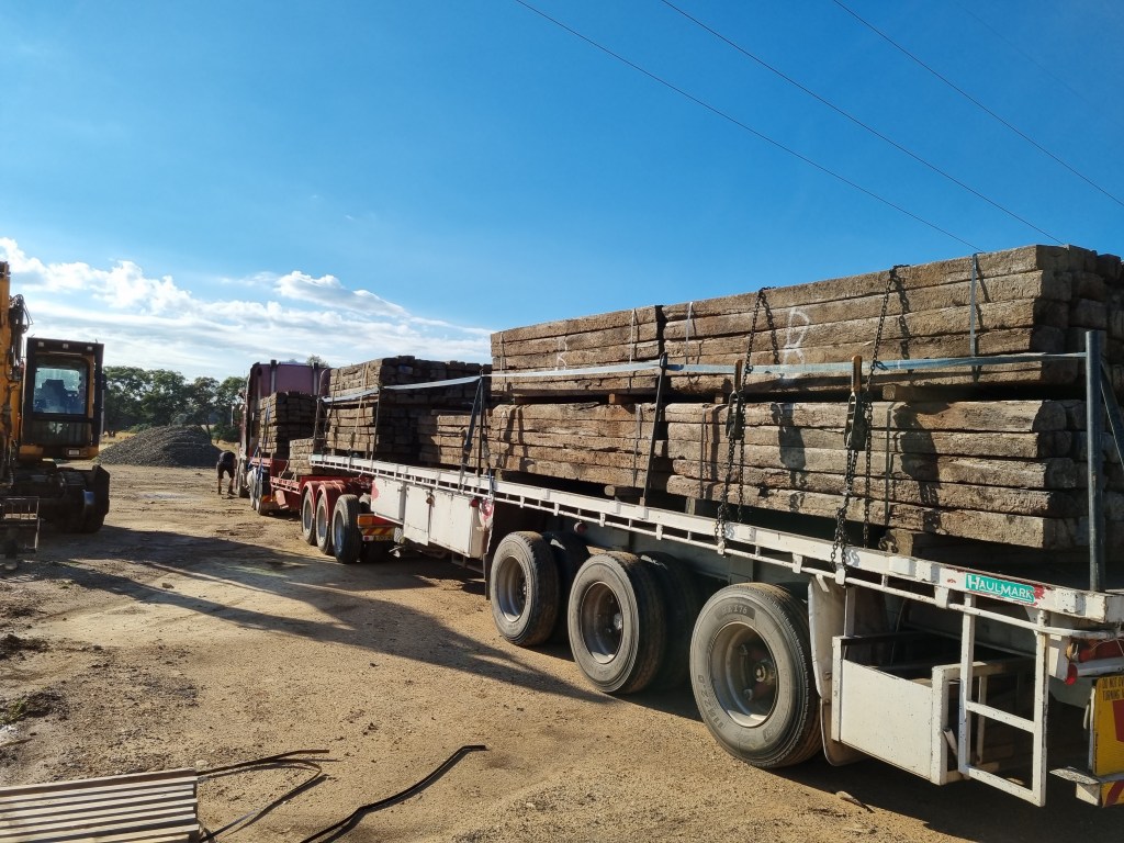 Towards the end of last year, our Yard at Muckleford was used as storage for 2nd hand timber sleepers released out of the Echuca Line Upgrade. The sleepers were destined for other tourist and heritage groups around Victoria and this week saw them loaded up and trucked off to their new homes.