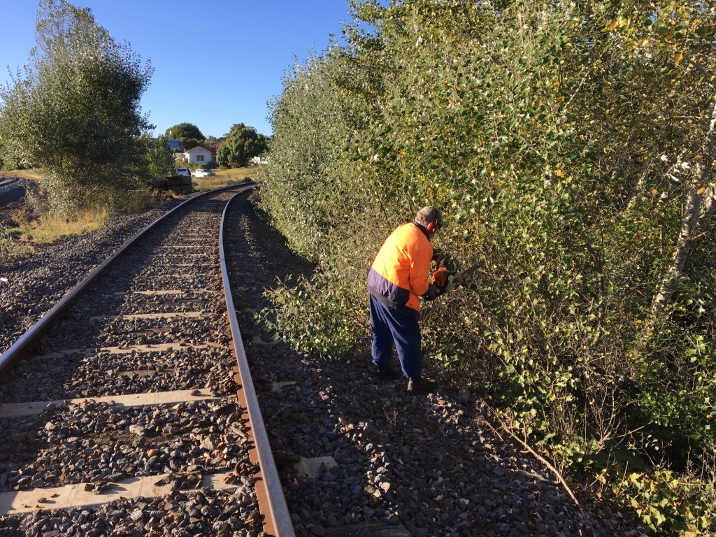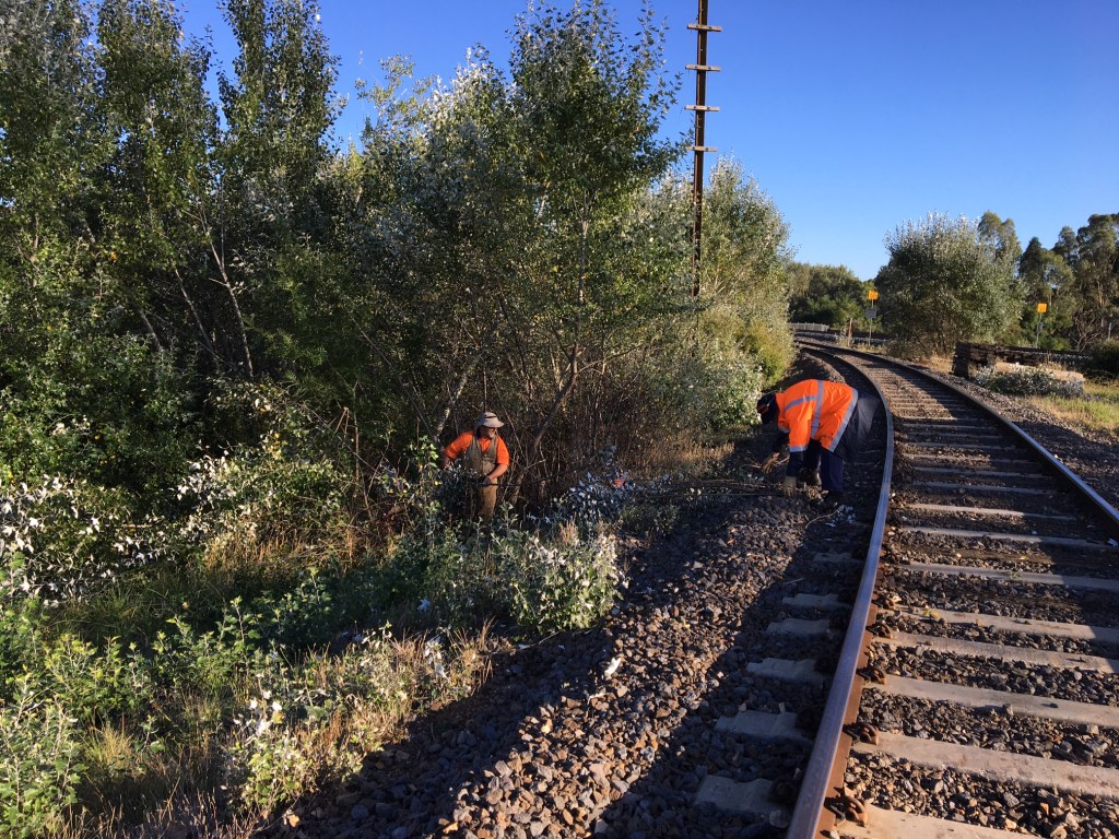 We started at Maldon Junction where we cleared some scrubby trees on the inside of the curve to allow people on the Gainsborough Street and Sheehan Street pedestrian crossings to see oncoming trains (and our train drivers to see them).