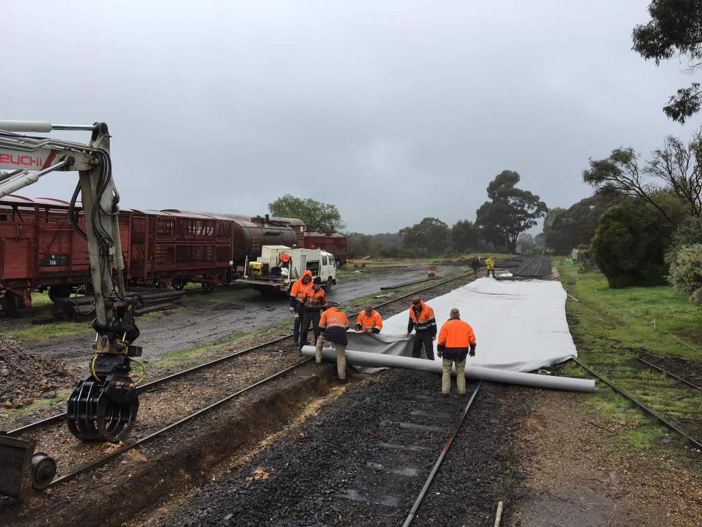 The real cause of the track failure in the turnout was the lack of drainage, so to prevent a recurrence, we’ve installed a drain the full length of the works and extending into the sump pump collection area so the water can be more effectively removed from the track.