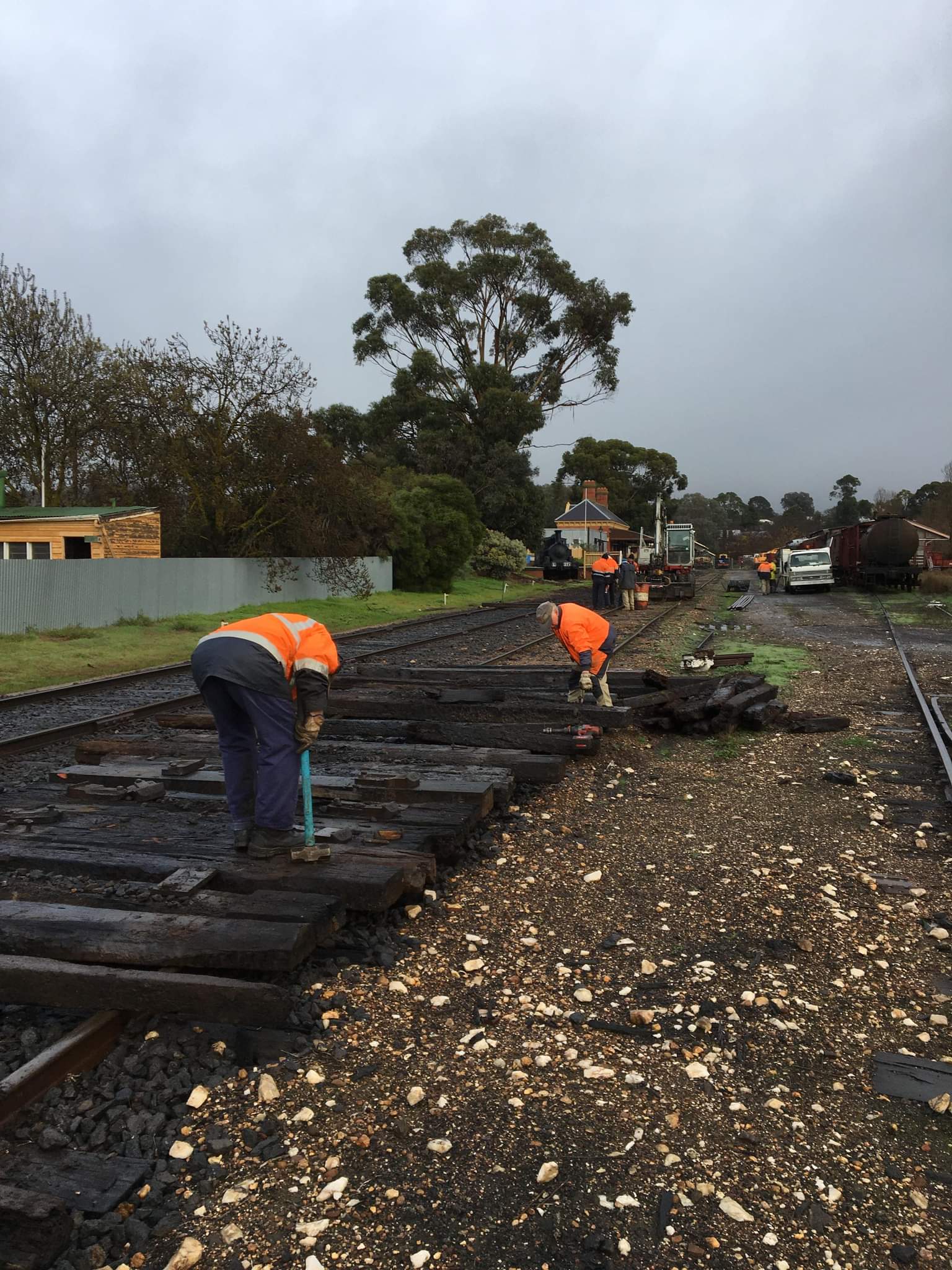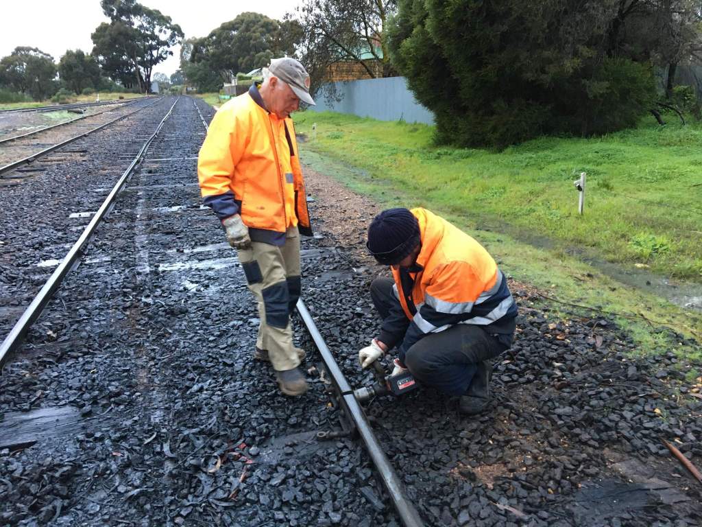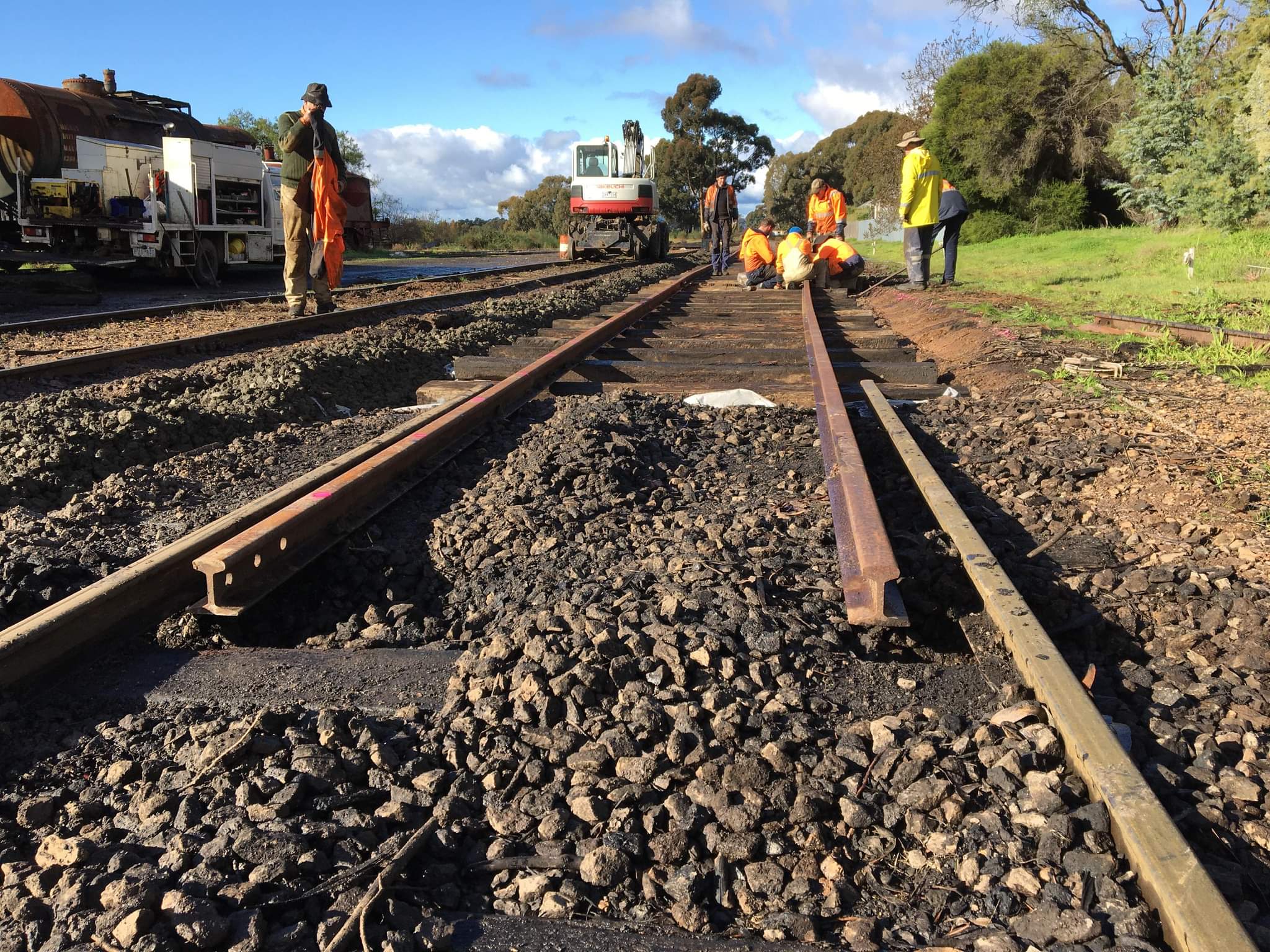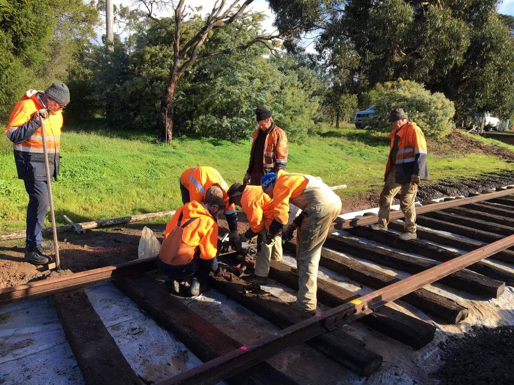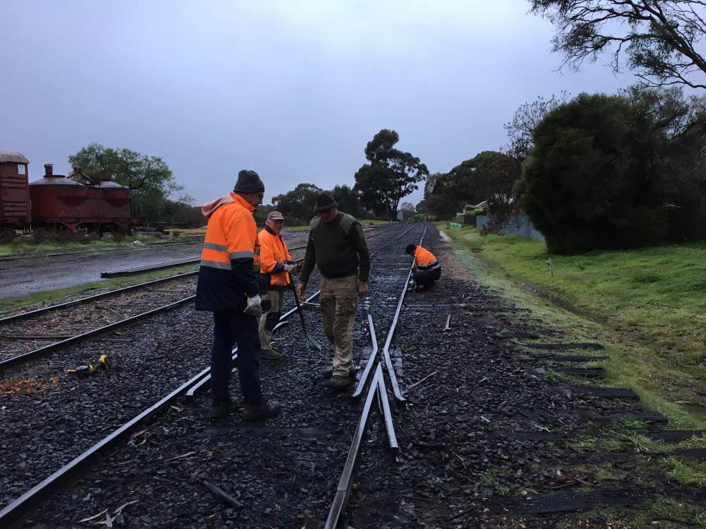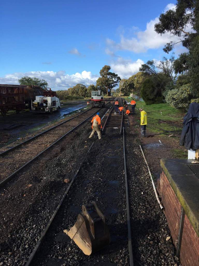 In no time at all, we’d laid out the sleepers, all 2nd hand timber of reasonable quality. The new rails were cut into the existing track. The new rail is 60lb AS, an improved version of the 60lb D we have been replacing elsewhere, however we only have a very small amount of it, so we’re saving it for historically significant places such as 1 road at Maldon.