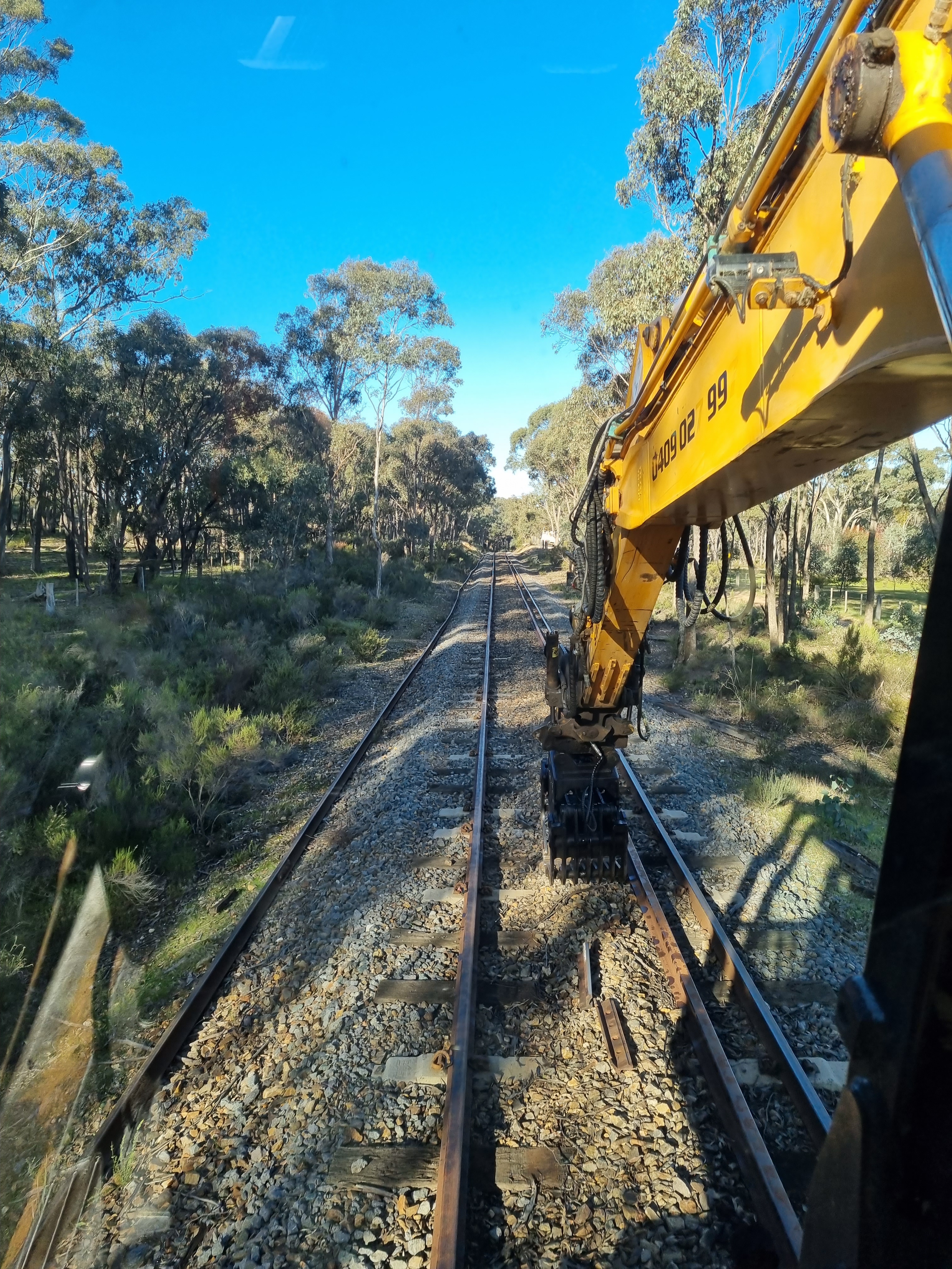 As predicted, a good sized gang was on hand today and we comfortably installed the last 5 lengths of 94lb rail in the UP leg of the straight. Another 275m of rail.
