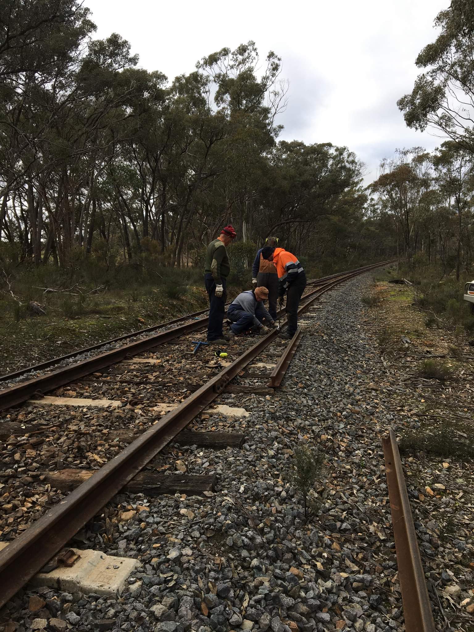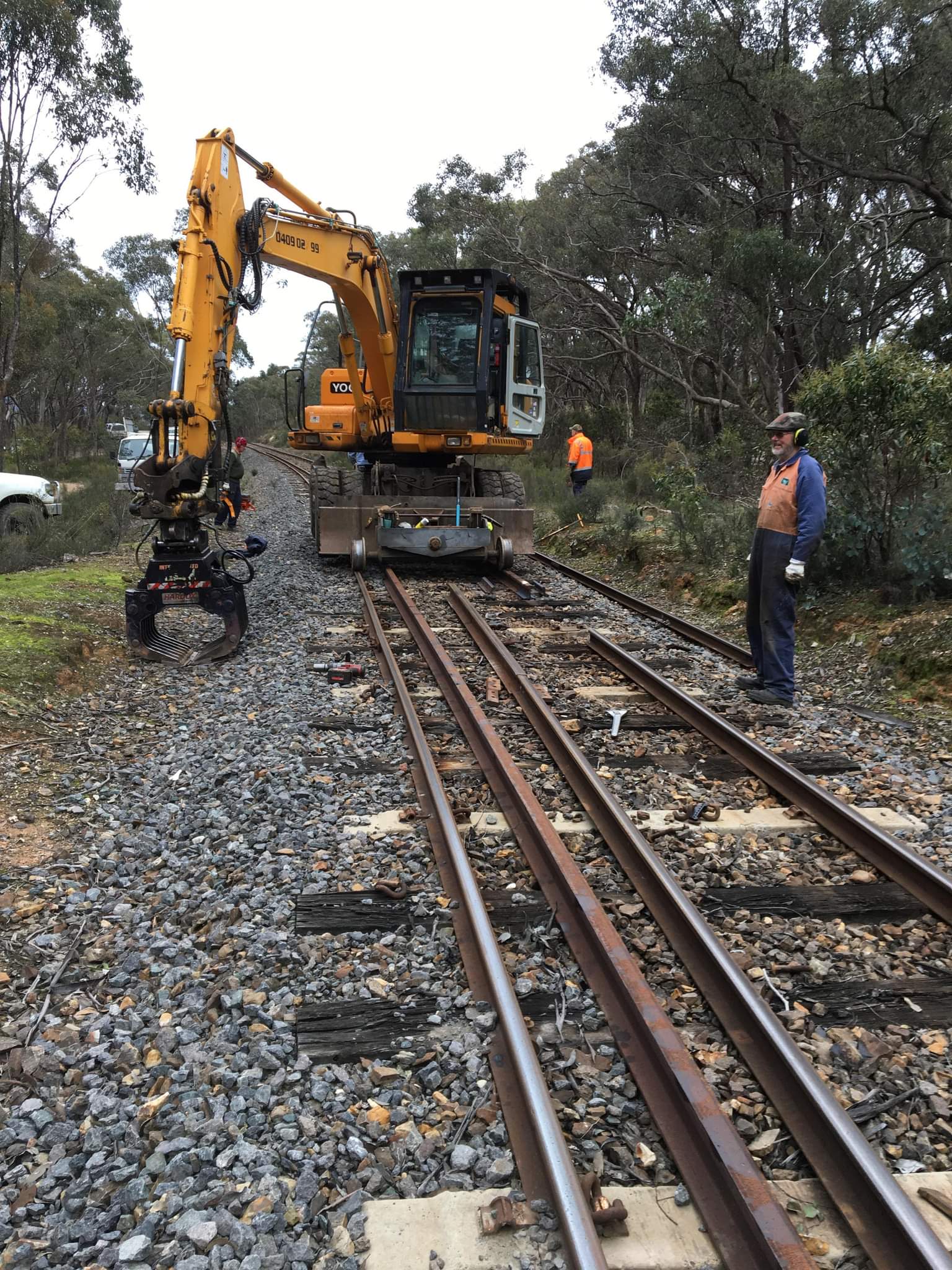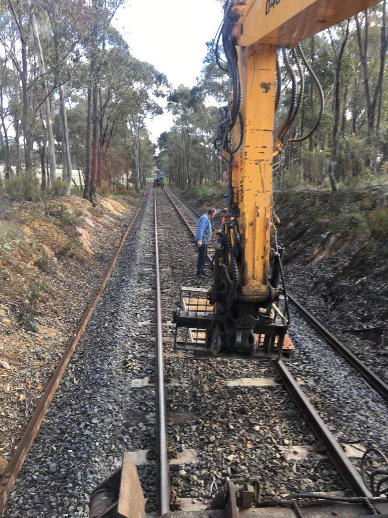 Only a little bit more rerailing today, just 2 more lengths, one in each leg to complement one more installed on Tuesday. The main purpose was to get the rail junctions to more suitable locations to allow us to leave them in the track for a few weeks now while we go back and fasten up the timber.