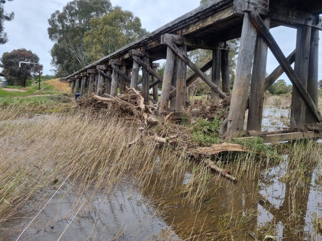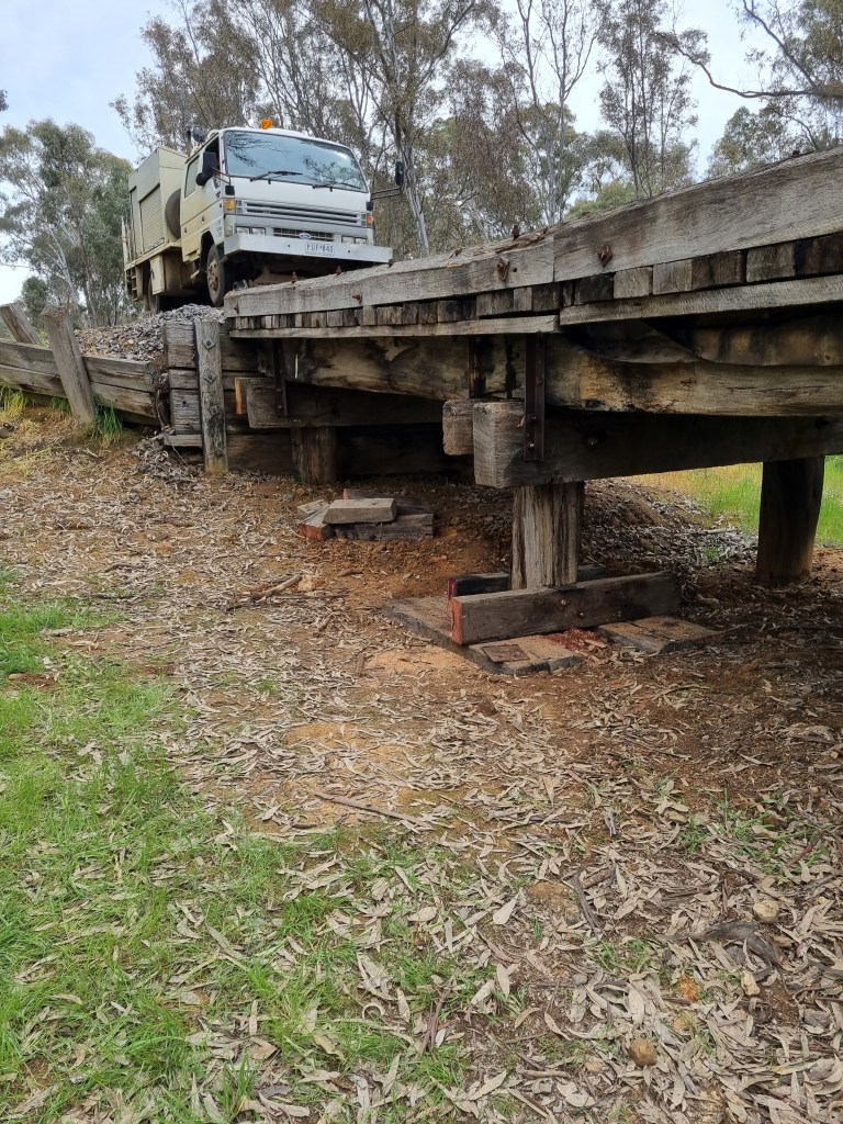 We spent today propping up a pile at Muckleford Creek Bridge, the pile in question has needed lifting for some time, however the track above was level and the pile solid.