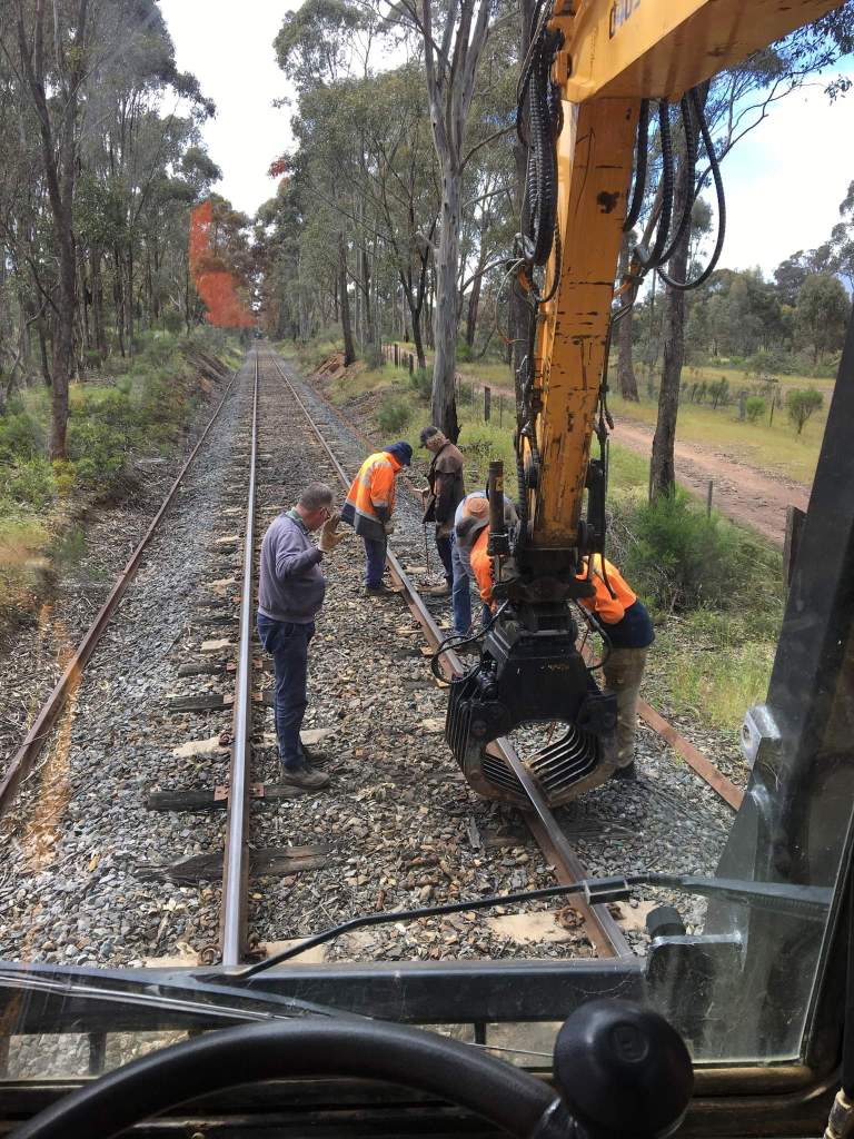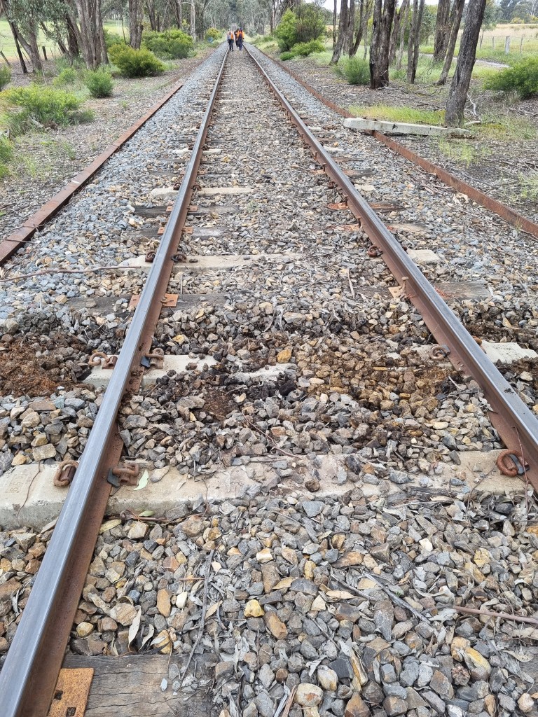 Tomorrow, we’ll meet out on site (where the diggers are parked about 1km east of Muckleford) from 8.15am, where we’ll drive all the spikes, pick up jewellery and possibly even start inserting more concrete sleepers.